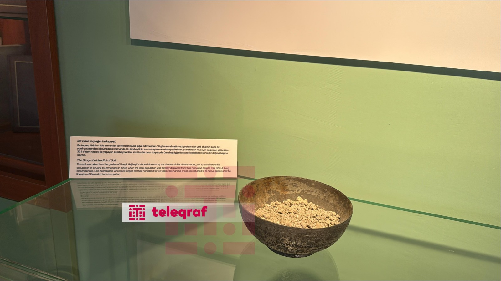 Qonaqlara həmçinin 1992-ci ildə Şuşa ermənilər tərəfindən işğal edilməzdən 10 gün əvvəl mezeyin əməkdaşı (direktoru) tərəfindən muzeyin bağından götürülən bir ovuc torpağın hekayəsi danışılıb.