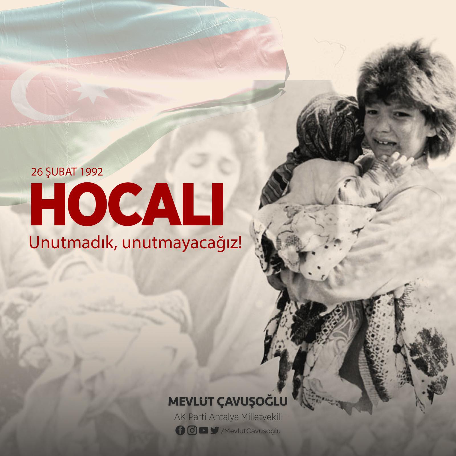 Türkiyə parlamentinin millət vəkili, keçmiş xarici işlər naziri Mövlud Çavuşoğlu sosial mediada Xocalı Soyqırımı ilə bağlı paylaşım edib.