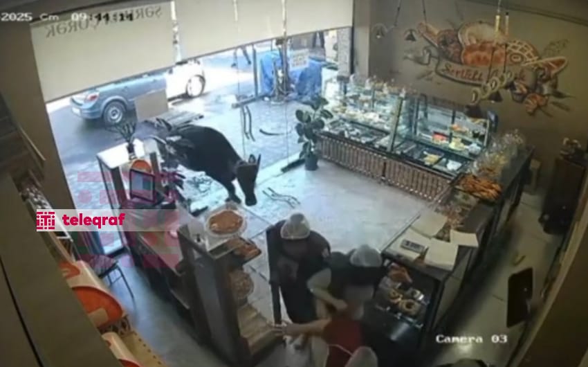 Sahibinin nəzarətindən çıxan iri buynuzlu heyvan çörək mağazasın şüşə qapısını sındıraraq içəri daxil olub.