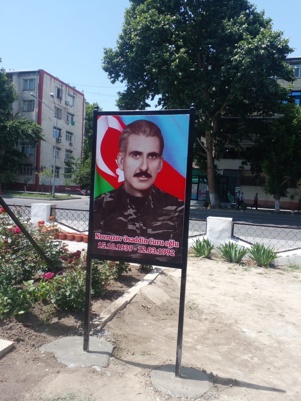 1992-ci ildə Ağdərədə gedən döyüşlərdə şəhid olmuş Novruzov Əsəddin Guru oğlunun nəşi illər sonra Mingəçevirə gətirilərək, Şəhidlər xiyabanında torpağa tapşırılıb.