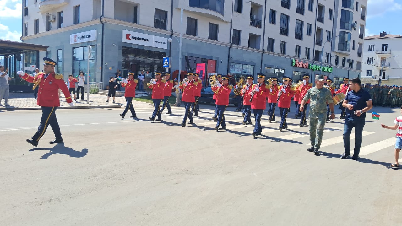 Hərbi vətənpərvərlik mahnıları, qələbə marşının sədaları yerli sakinlərinə və şəhərin qonaqlarına xoş ovqat bəxş edib və böyük maraqla dinlənilib.