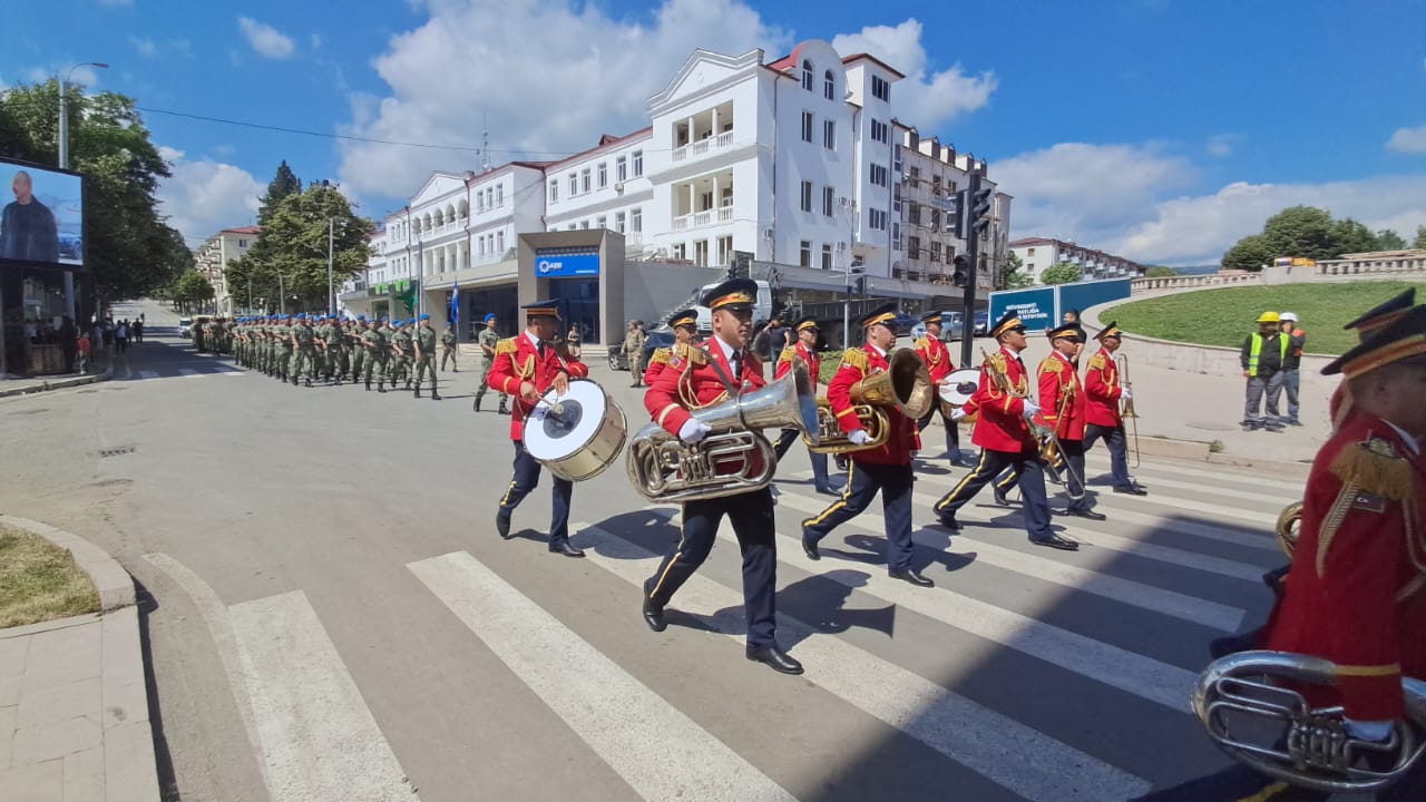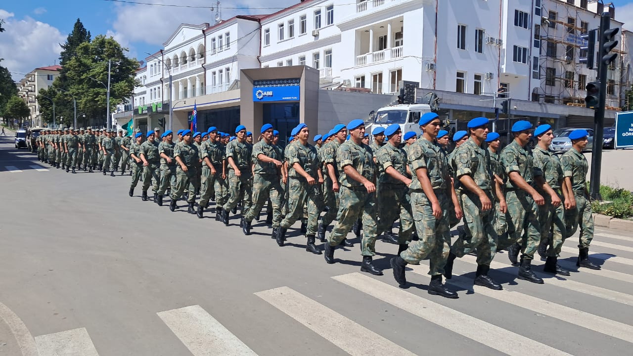 Xankəndi şəhərində, Ağdərə və Xocalı rayonlarında Bərpa, Tikinti və İdarəetmə Xidmətinin İctimaiyyətlə əlaqələr şöbəsindən Teleqraf-a verilən məlumata görə, şəxsi heyət hərbi orkestrin müşayiəti ilə şəhərin mərkəzi küçələrində müəyyən edilən marşrutlar üzrə yürüş edib.