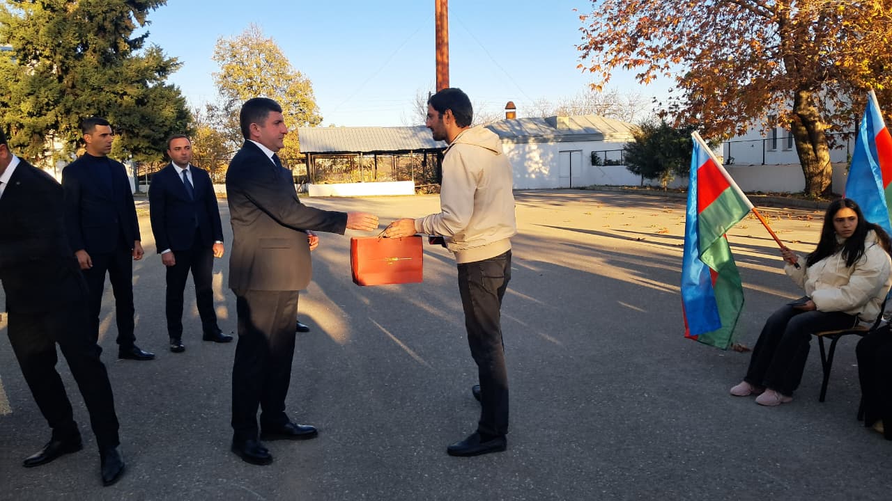 Ağdərə rayonunun Həsənriz kəndinə çatan ailələrə mənzillərin açarları təqdim edilib.