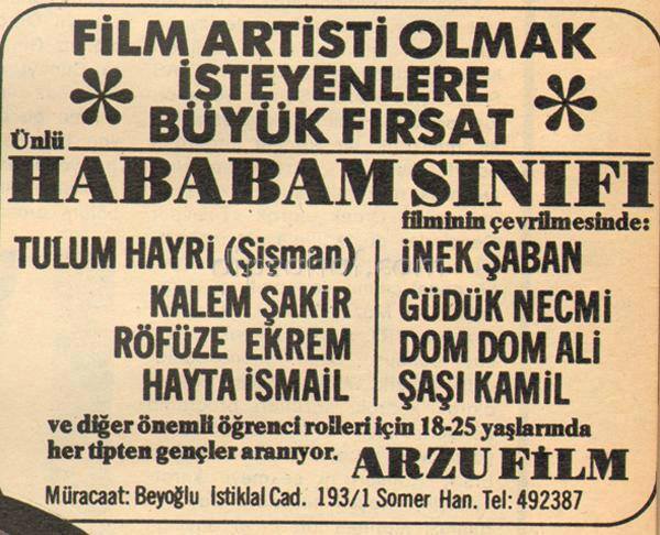 1966-cı ildə Orhan Günşirayla Atıf Yılmazın sahibi olduğu “Yerli Film” şirkəti “Hababam sinfi”nin çəkiliş haqqını satın alır. Atıf Yılmazın rejissorluğunda çəkiləcək film senzuranı aşa bilmir. Daha sonra “Mələk Film”in sahibi Şahan Haki çəkiliş haqqını satın alır, lakin o da senzuradan keçirə bilmir. Amma film sahibləri inadlarından vaz keçmirlər. “Sinema Film”in sahibi Alp Zəki Həpər, “Özər Film” sahibi Vural Pakər və başqaları cəhd edirlər, lakin onlar da senzuranı aşa bilmirlər. Senzorun göstərdiyi səbəb isə belə idi: “Türk təhsil sistemini daşlayaraq mənfi göstərmək”.