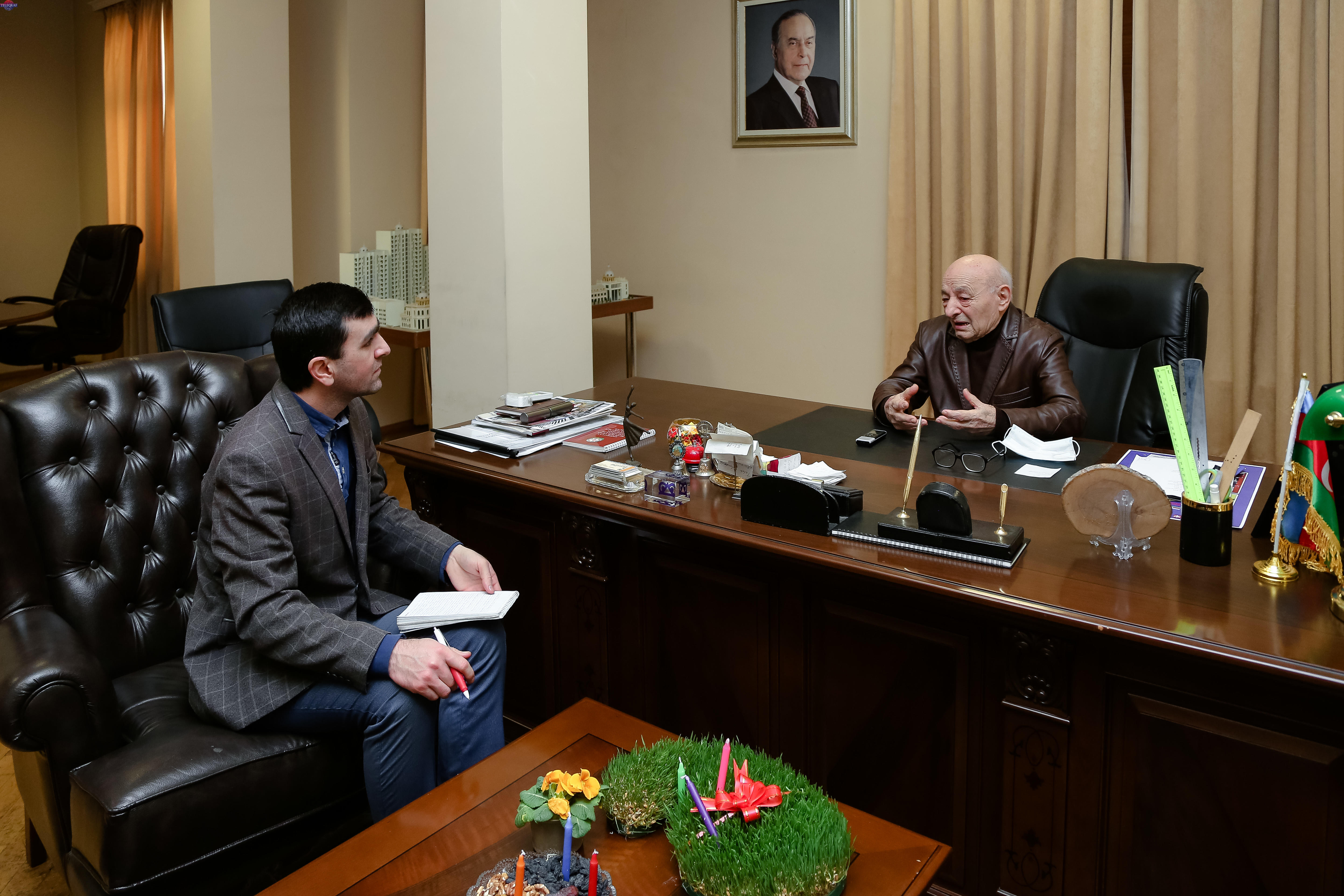 – Heydər Əliyev bunu özü mənə demişdi, mən özüm bundan əvvəl də bilirdim ki, o, memar olmaq istəyib. Ümumiyyətlə, bir Şərq ölkəsi olaraq bizdə heykəltəraşlar, memarlar həmişə az olub. O, 1939-cu ildə Naxçıvan Pedaqoji Texnikumunu bitirdikdən sonra Azərbaycan Sənaye İnstitutunun memarlıq fakültəsinə daxil olub. İki il oxuyub. Ancaq başlayan müharibə ona təhsilini başa çatdırmağa imkan verməyib. Müharibə onun planlarını tamamilə dəyişdirib. Buna baxmayaraq o, bu peşəyə daim yaxın idi. Hər zaman rəsm çəkməyi sevirdi. Onun qardaşı Hüseyn Əliyev peşəkar rəssam, Azərbaycan xalq rəssamı idi. O, Leninqradda Rəssamlıq, Memarlıq və Heykəltəraşlıq İnstitutunda oxumuşdu. Ona görə də Heydər Əliyev özünü bu sahəyə yaxın hesab edirdi və rəssamlarla ünsiyyətdə olmağı çox sevirdi.