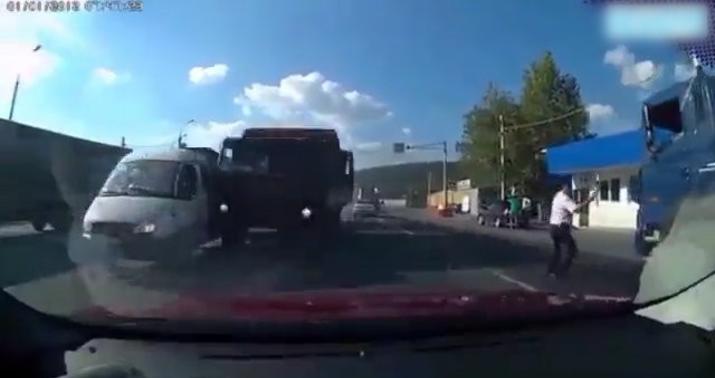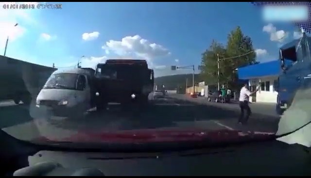 Sürücü piyadanı qorumaq üçün həyatını təhlükəyə atıb.