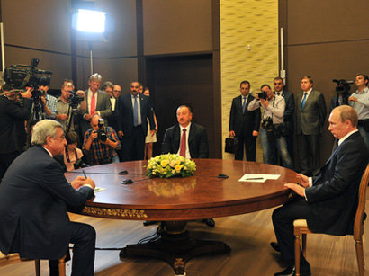 Azərbaycan Prezidenti İlham Əliyev, Rusiya prezidenti Vladimir Putin və Ermənistan prezidenti Serj Sarqsyanın iştirak ilə Soçidə "Boçarov Ruçey" iqamətgahında üçtərəfli görüş başlayıb.