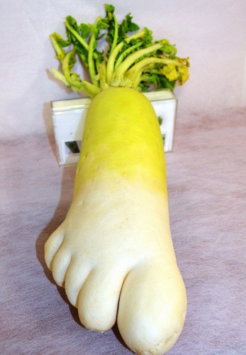 Yaponiyada yaşayan kəndçi Yukihiro İkeuchinin əkin sahəsində yetişən ayaq formalı turp görənlərin böyük təəccübünə səbəb olub.