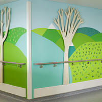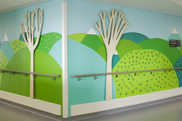 Tekstil dizayneri kimi tanınan Uilson bloklardan birinin divarlarının tərtibatını öz üzərinə götürüb. Məkan dağlar, təpələr və ağaclarla gözəl məkana çevrilib. Rəssam hospitalın xəstələrini də prosesə cəlb edib və onlara divarda təpələri çəkmək tapşılırıb.