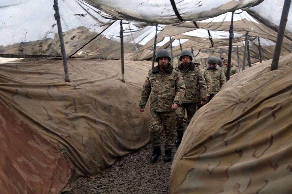 Döyüş növbəsi çəkən şəxsi heyətlə görüşən müdafiə naziri general-polkovnik Zakir Həsənov müdafiənin dayanıqlığını, hərbi qulluqçuların döyüş və mənəvi-psixoloji hazırlığını yoxlayıb, komanda-müşahidə məntəqəsindən düşmən mövqelərini izləyib.