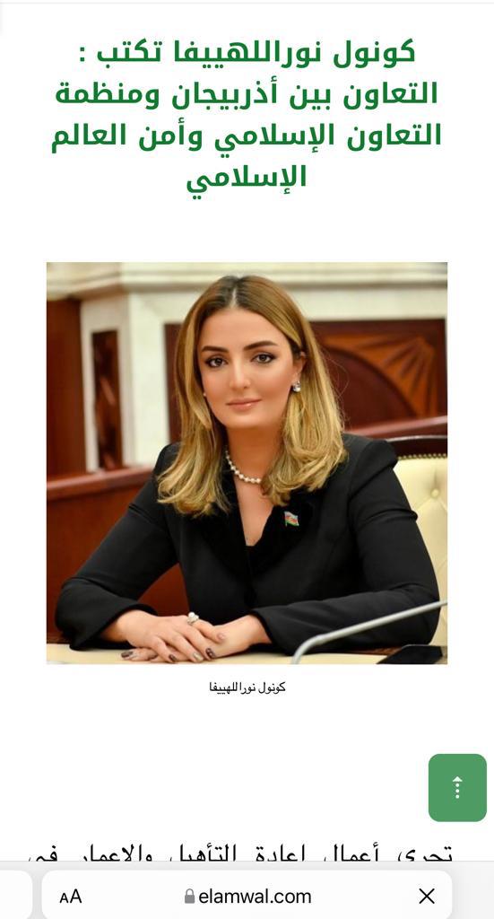 Teleqraf.com xəbər verir ki, Milli Məclisin deputatı Könül Nurullayeva Misir mətbuatında dərc olunan “Azərbaycanla İslam Əməkdaşlıq Təşkilatı arasında əməkdaşlıq İslam dünyasının təhlükəsizliyinə xidmət edir” adlı məqaləsi ilə bağlı danışarkən bu sözləri deyib.
