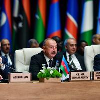 Xanımlar və cənablar, sədrliyimiz dövründə Azərbaycan xalqı üçün ən önəmli və yaddaqalan məqam Vətən müharibəsində bizim tarixi Qələbəmiz oldu. 2020-ci ildə Azərbaycan Ermənistanı döyüş meydanında məğlub edərək Ermənistanın 30 illik işğalına son qoydu. İşğalçı ölkə kimi Ermənistan kapitulyasiya aktını imzalamağa məcbur oldu. Bununla da Azərbaycan öz ərazi bütövlüyünü və tarixi ədaləti bərpa etdi, BMT Təhlükəsizlik Şurasının 1993-cü ildə qəbul etdiyi dörd qətnaməsinin icrasını özü təmin etdi. Azərbaycanın bu Qələbəsi beynəlxalq hüququn və ədalətin zəfəridir.
