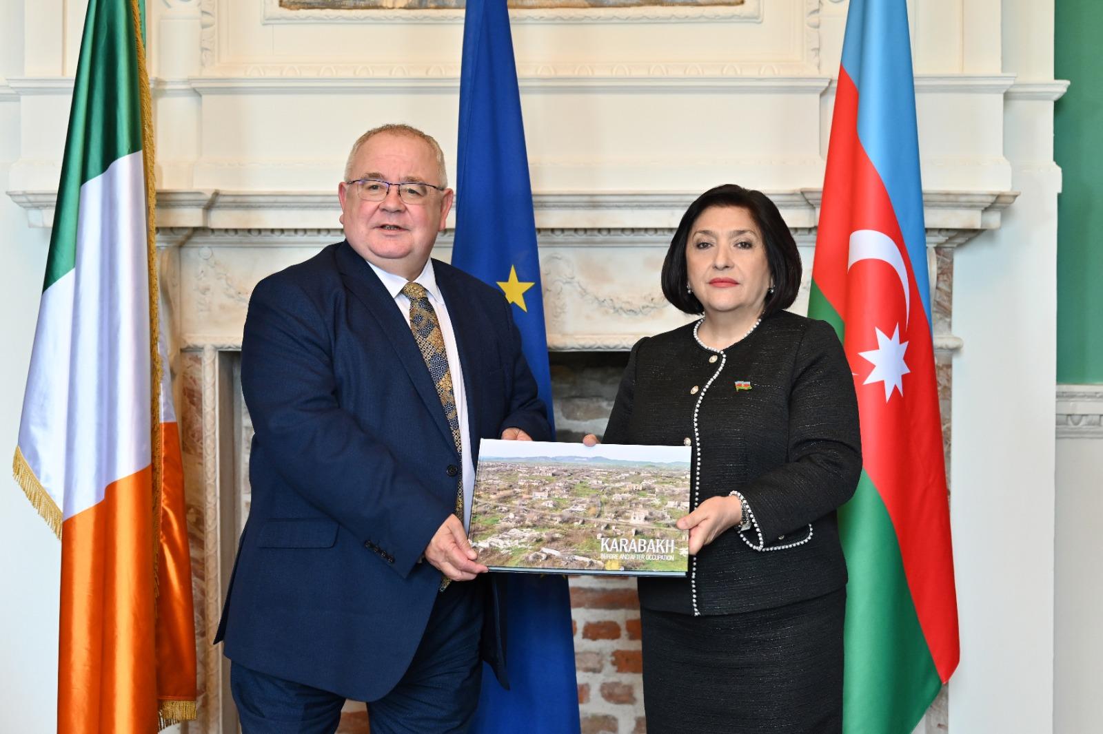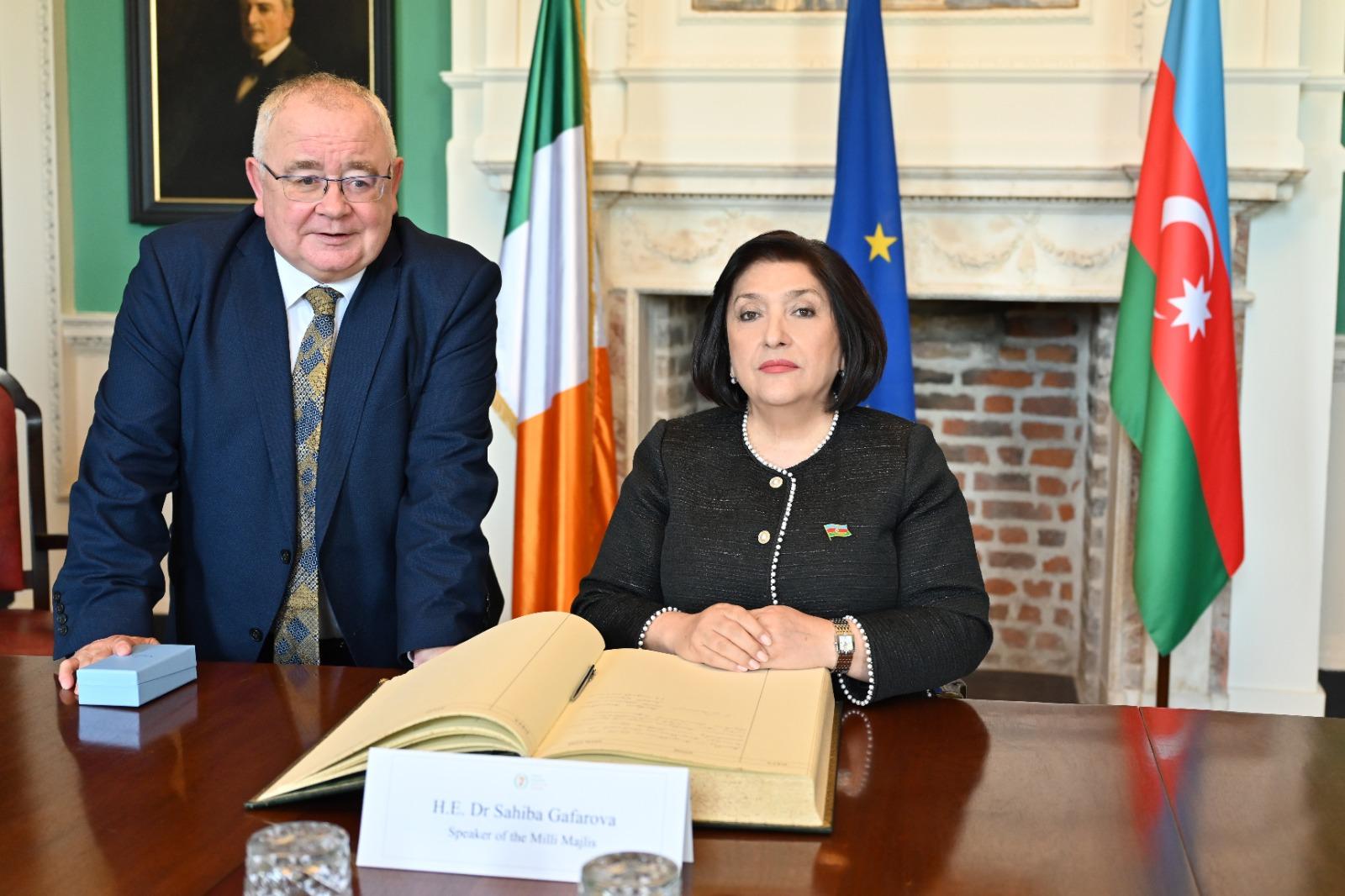 İrlandiyada işgüzar səfərdə olan Milli Məclisin sədri Sahibə Qafarova İrlandiya Respublikası Parlamentinin Nümayəndələr Palatasının sədri Şon Oferghail ilə görüşüb.