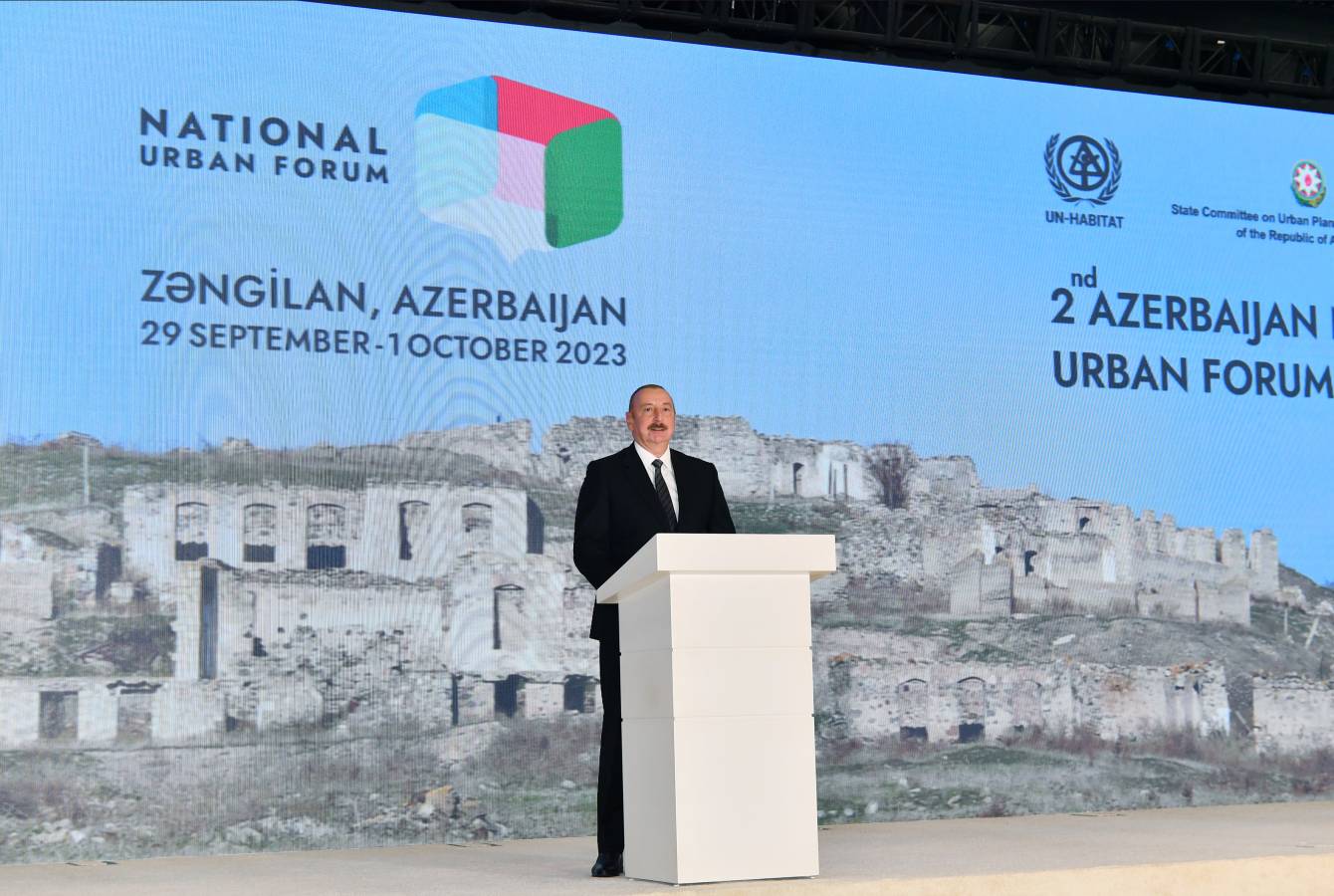 Şəhərsalma və şəhərlərin inkişafı davamlı inkişafa nail olmaqda mühüm rol oynayır. Davamlı qlobal urbanizasiya tendensiyaları fonunda, hər bir ölkənin üzləşdiyi spesifik çağırış və imkanlar bu inkişaf proqramının əhəmiyyətini daha da artırır. Ona görə də işğaldan azad edilmiş ərazilərimizə həyatın geri qaytarılması, dayanıqlı inkişaf, şəhər və digər yaşayış məskənlərinin yenidən qurulması sahəsində həyata keçirilən fəaliyyət, görülmüş işlər, eləcə də Qarabağ həqiqətlərinin dünya ictimaiyyətinin diqqətinə çatdırılması, Azərbaycanın bu sahədə topladığı təcrübəni beynəlxalq tərəfdaşlarla bölüşməsi məqsədilə Milli Şəhərsalma forumlarının təşkil edilməsi, xüsusilə də tədbirin azad edilmiş ərazilərdə keçirilməsi mühüm əhəmiyyət kəsb edir. Şəhərsalma məsələsinin ölkəmiz üçün prioritetliyini nəzərə alaraq, Azərbaycan BMT-nin Məskunlaşma Proqramı (UN-HABİTAT) ilə əməkdaşlığa başlayıb.