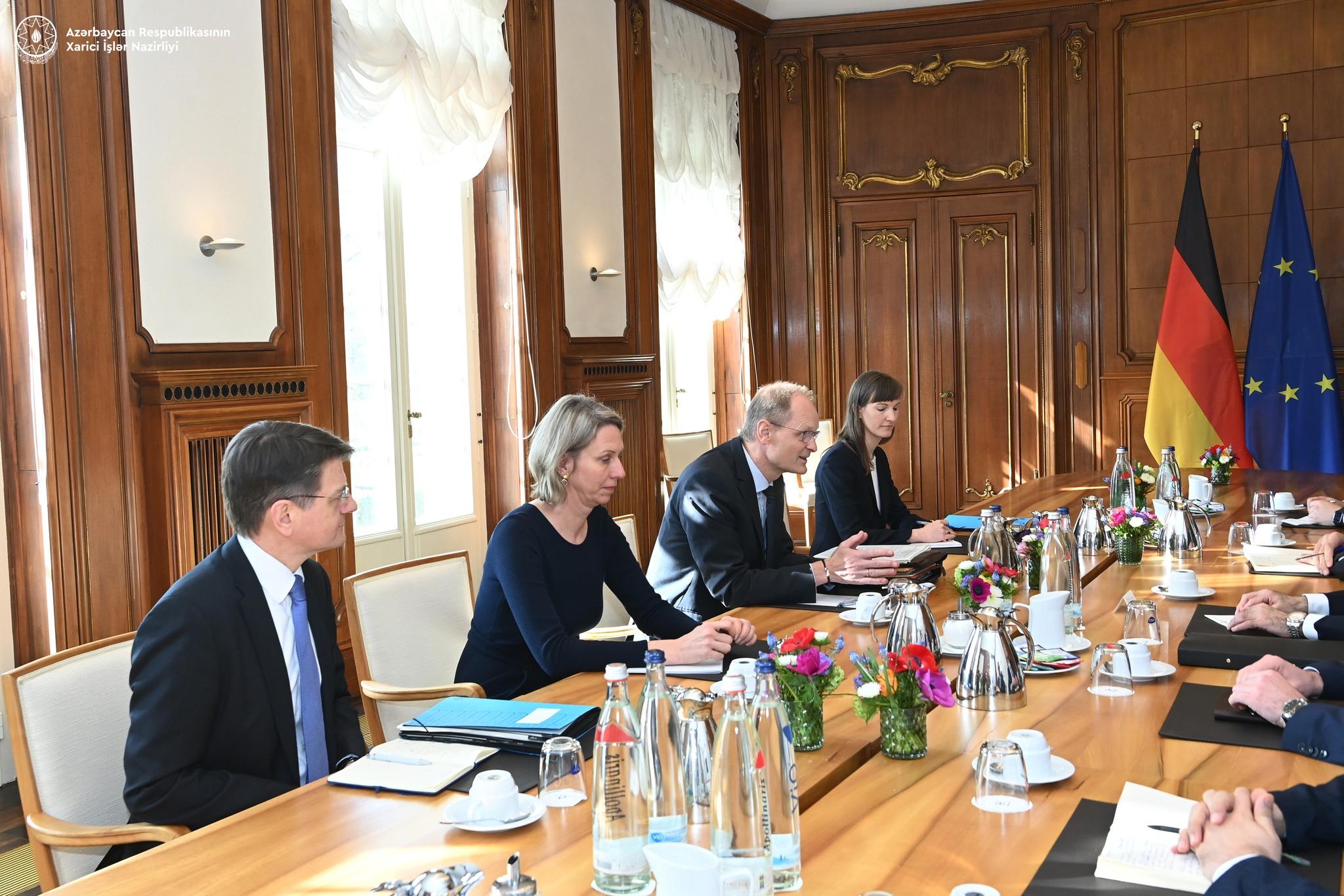 Azərbaycanın xarici işlər naziri Ceyhun Bayramov Almaniyaya işgüzar səfəri çərçivəsində Almaniya Federativ Respublikasının Xarici İşlər Nazirliyinin dövlət katibi Tomas Bager ilə görüşüb.