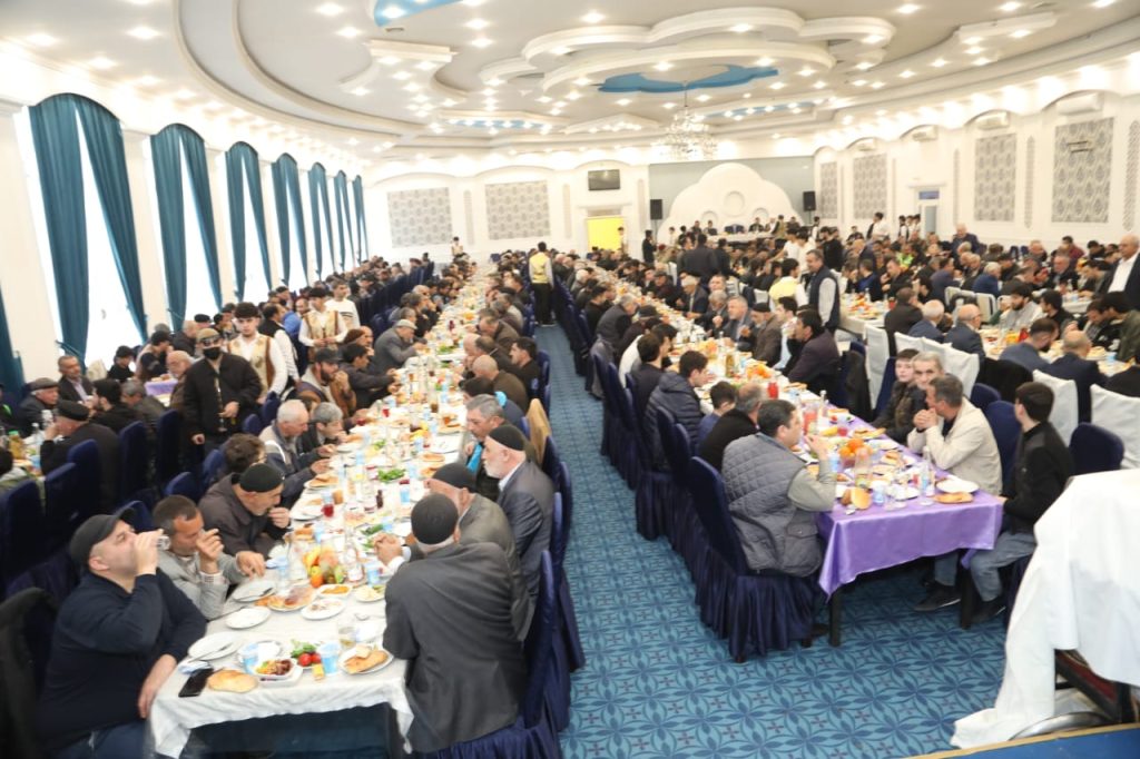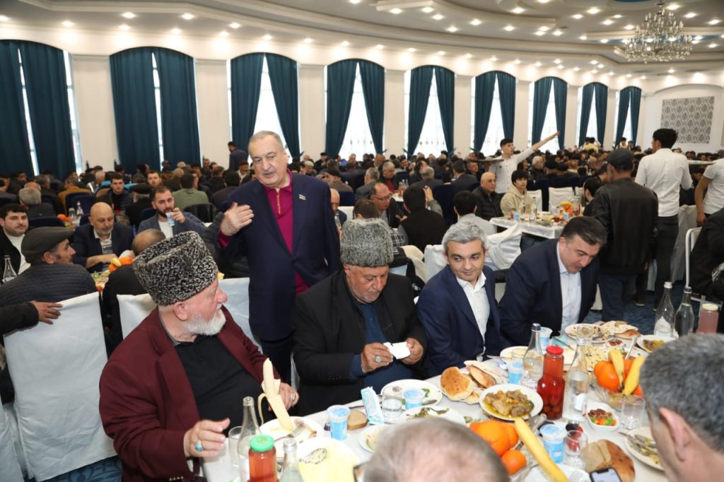 Din xadimləri tərəfindən “Qurani-Kərim”dən ayələr oxunduqdan sonra mərasimdə çıxış edən Azərbaycan Ağsaqqallar Şurasının sədri, millət vəkili, professor Eldar Quliyev hər kəsi müqəddəs Ramazan bayramı münasibətilə təbrik edərək tutulan orucların, edilən ibadətlərin və duaların uca Allah dərgahında qəbul olunmasını diləyib. Bu cür bayram süfrələrinin suveren Azərbaycanın hər bir şəhər və rayonunda, o cümlədən, Müzəffər Ali Baş Komandanımız cənab İlham Əliyevin başçılığı ilə rəşadətli Ordumuzun düşmən işğalından azad etdiyi dədə-baba yurdumuzda da təşkil olunduğunu qeyd edib. O, həmçinin, Azərbaycan Respublikasının Prezidenti cənab İlham Əliyevin və Birinci vitse-prezident Mehriban xanım Əliyevanın rəhbərliyi ilə ölkəmizdə görülən genişmiqyaslı səmərəli işlərdən, vətəndaşlarımıza, xüsusilə şəhid ailələrinə, qazilərə, o cümlədən aztəminatlı ailələrə göstərilən yüksək diqqət və qayğıdan söz açıb.