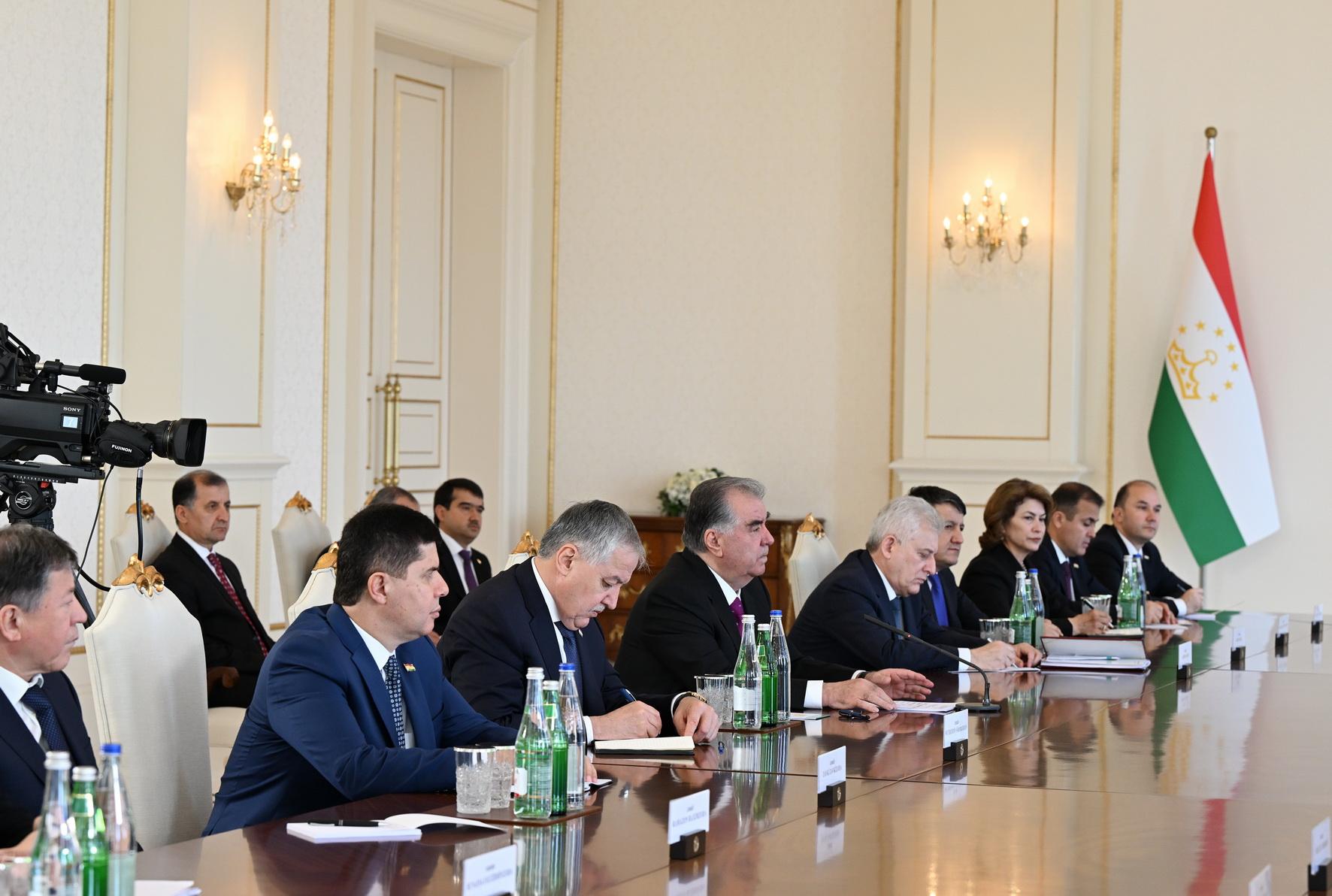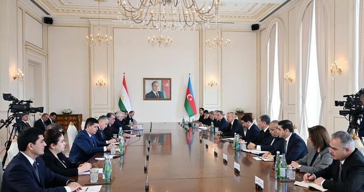 Azərbaycan Respublikasının Prezidenti İlham Əliyevin Tacikistan Respublikasının Prezidenti Emoməli Rəhmon ilə geniş tərkibdə görüşü keçirilib.