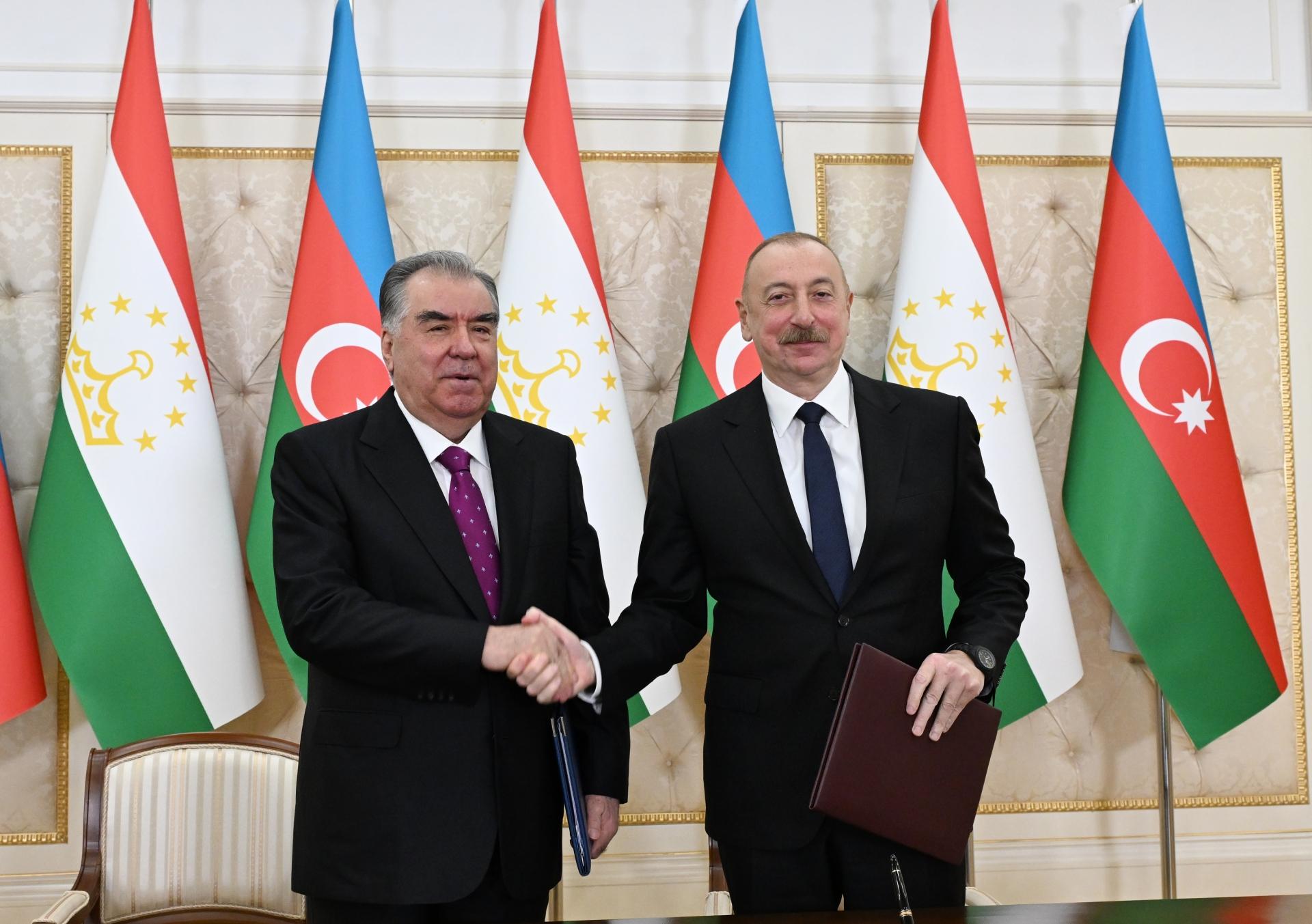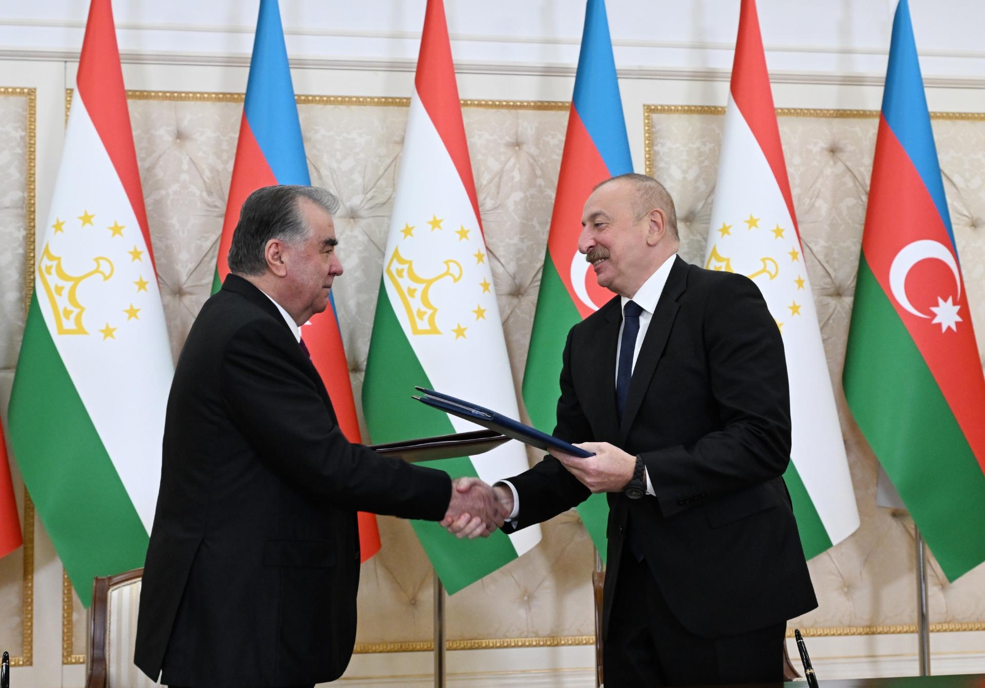 Teleqraf.com xəbər verir ki, Azərbaycan Respublikasının Prezidenti İlham Əliyev və Tacikistan Respublikasının Prezidenti Emoməli Rəhmon “Azərbaycan Respublikası ilə Tacikistan Respublikası arasında strateji tərəfdaşlıq haqqında Bəyannamə”ni imzalayıblar.