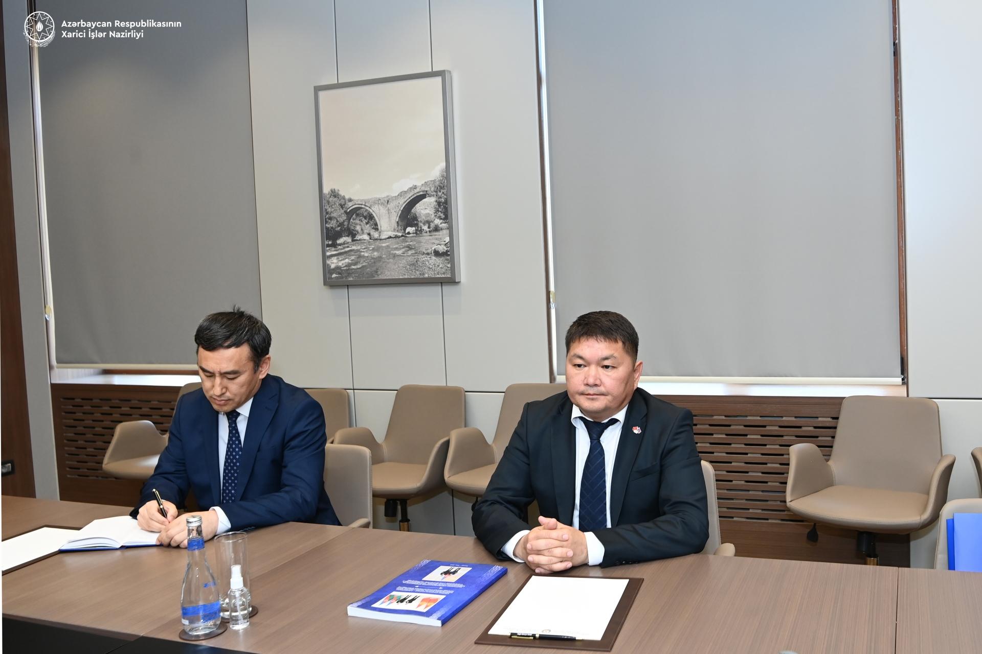 Bildirilib ki, bununla əlaqədar Azərbycan xarici işlər naziri Ceyhun Bayramov səfiri qəbul edib. Görüş zamanı Azərbaycan və Qırğızıstan arasında mövcud dərinləşmiş strateji tərəfdaşlıq münasibətlərindən, liderlər arasında artan siyasi təmaslardan və artan əməkdaşlıqdan məmnunluq ifadə olunub.