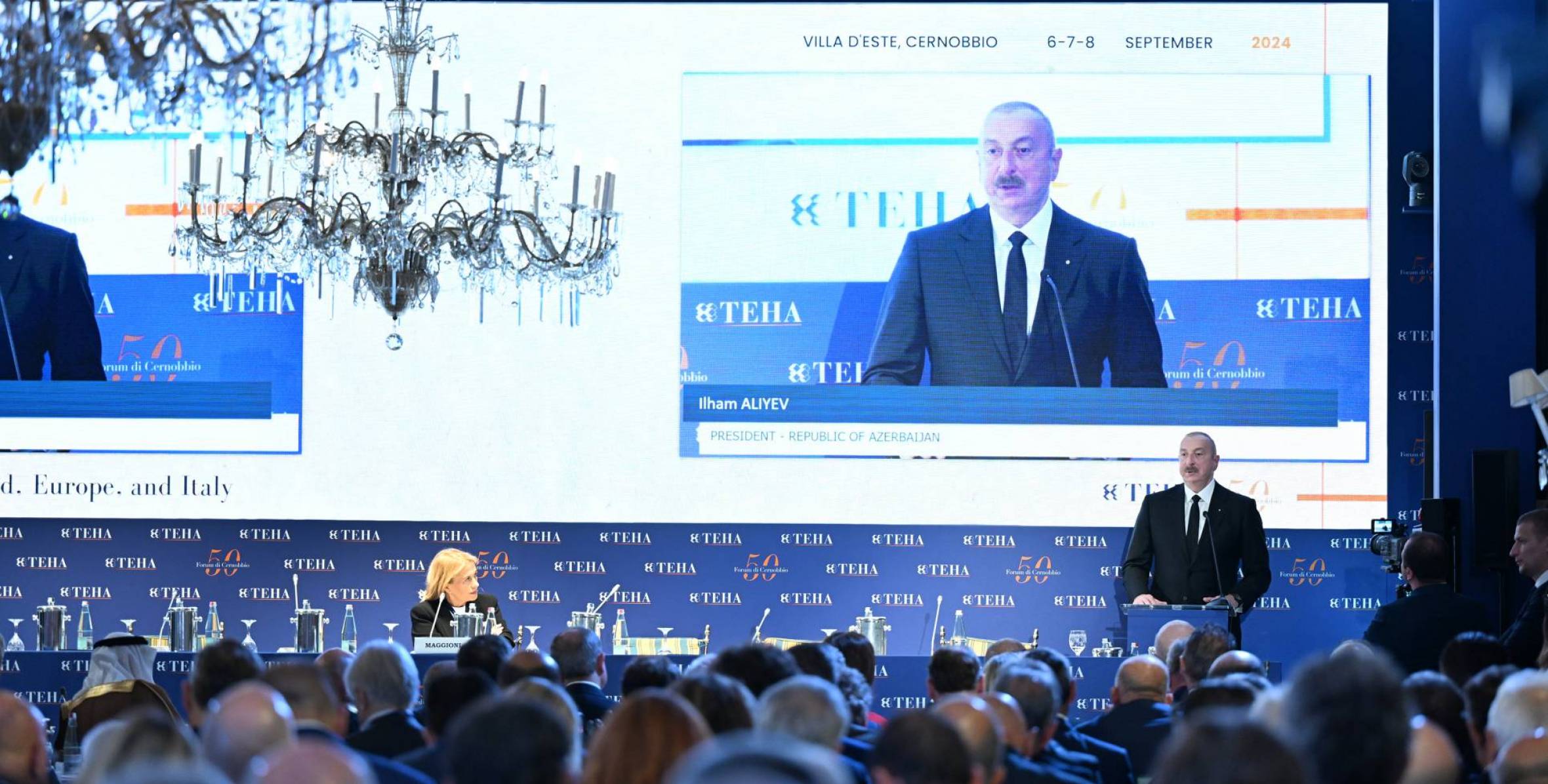 Prezident İlham Əliyev İtaliyaya səfəri çərçivəsində “Dünya, Avropa və İtaliya haqqında bilgilər” mövzusuna həsr olunmuş Beynəlxalq Çernobbio Forumunda “Yeni geosiyasi şəraitdə Azərbaycanın rolu” adlı sessiyada çıxışında vacib məsələlərdən bəhs edib. Azərbaycan və İtaliyanın strateji tərəfdaşlar kimi fəaliyyətində 10 il öncə əldə edilən ikitərəfli bəyannamənin mahiyyətinə istinad olunub. Hazırda iki ölkə arasında əməkdaşlığın bir çox sahələri əhatə etdiyi bildirilib. Azərbaycanla İtaliya arasında yüksək səviyyəli siyasi təmasların mahiyyəti önə çəkilib. Cənab Prezident çıxışında Azərbaycan İtaliyanın bir nömrəli neft və ikinci ən böyük qaz təchizatçısı olduğunu bildirib. Eyni zamanda İtaliya Azərbaycanın bir nömrəli ticarət tərəfdaşı olduğu vurğulanıb.