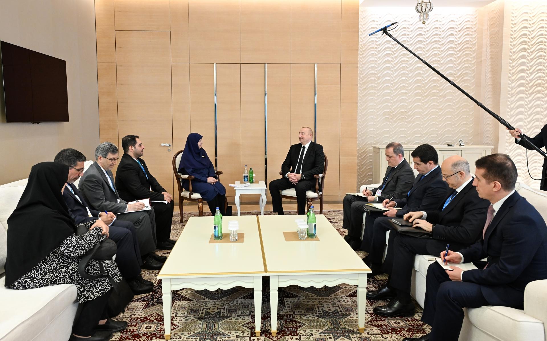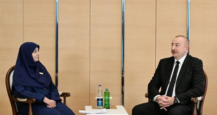 Azərbaycan Prezidenti İlham Əliyev noyabrın 13-də İran İslam Respublikasının vitse-prezidenti, İranın Ətraf Mühitin Mühafizəsi Təşkilatının sədri Şina Ənsari ilə görüşüb.