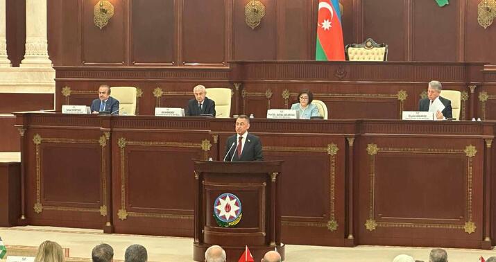 "Biz istiqlal mübarizəsində can qardaşlarımıza dəstək olduq. Nuri paşa Azərbaycana göndərildi. Azərbaycan Milli Məclisinin qurucusu Rəsulzadəni hörmətlə anıram. Heydər Əliyevin "Bir millət, ili dövlət" sözləri münasibətlərin ən yaxşı ifadəsidir. Öndər Atatürk "Sevincimiz bir, kədərimiz biridir" deyirdi. Ölkələrimiz arasındakı iş birliyi sürətlə inkişaf edir. XXI əsrdə tarix yazırıq".