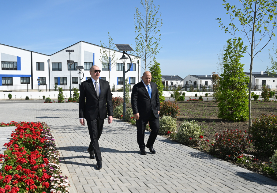 Sonra dövlətimizin başçısı kəndə köçən sakinlərlə görüşüb və onlara evlərin açarlarını təqdim edib.