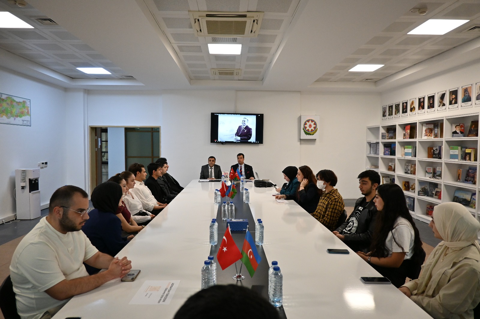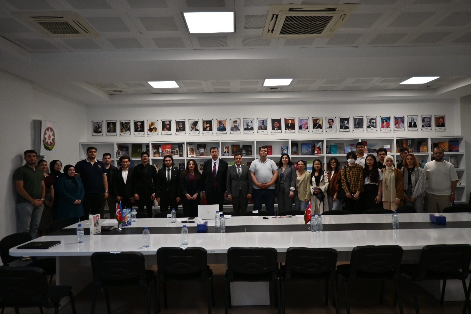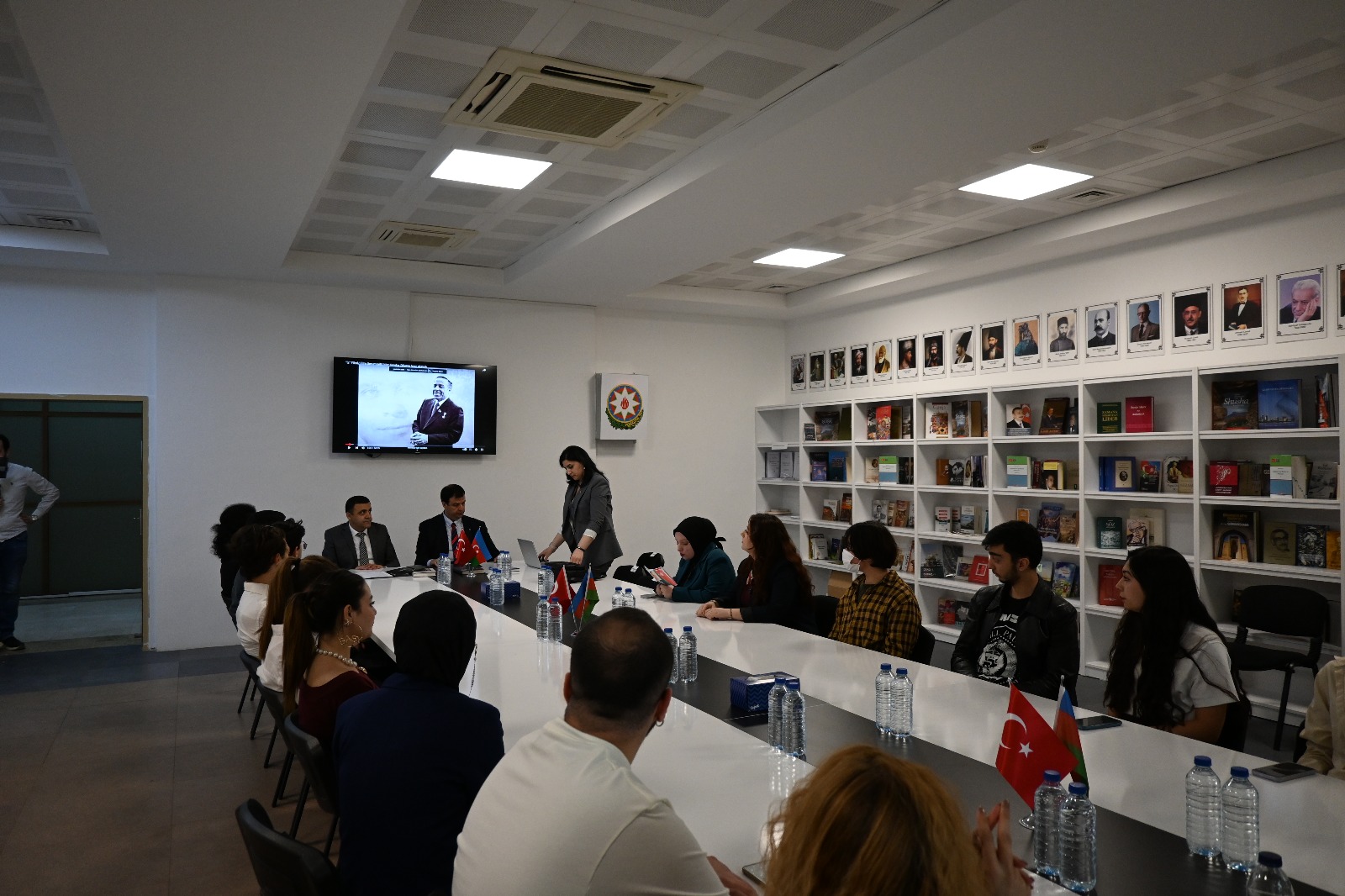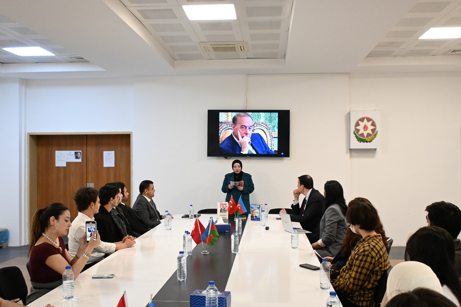 Kursun tələbələrindən Ayşə Şimşək "Heydər Əliyevin Azərbaycan mədəniyyətinin inkişafına töhfələri" mövzusunda çıxış edib, Dilara Dilşah Kaya isə "Heydər Əliyev dövründə media və dövlət-media münasibətlərinin inkişafı" barədə məruzəsi təqdim olunub.
