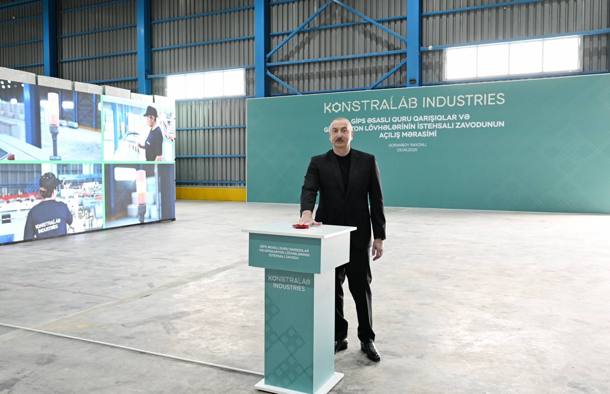 Azərbaycan Prezidenti İlham Əliyev iyunun 23-də Goranboy rayonunda “Konstralab Industries” QSC-nin tikinti materialları istehsalı müəssisəsinin açılışında iştirak edib.