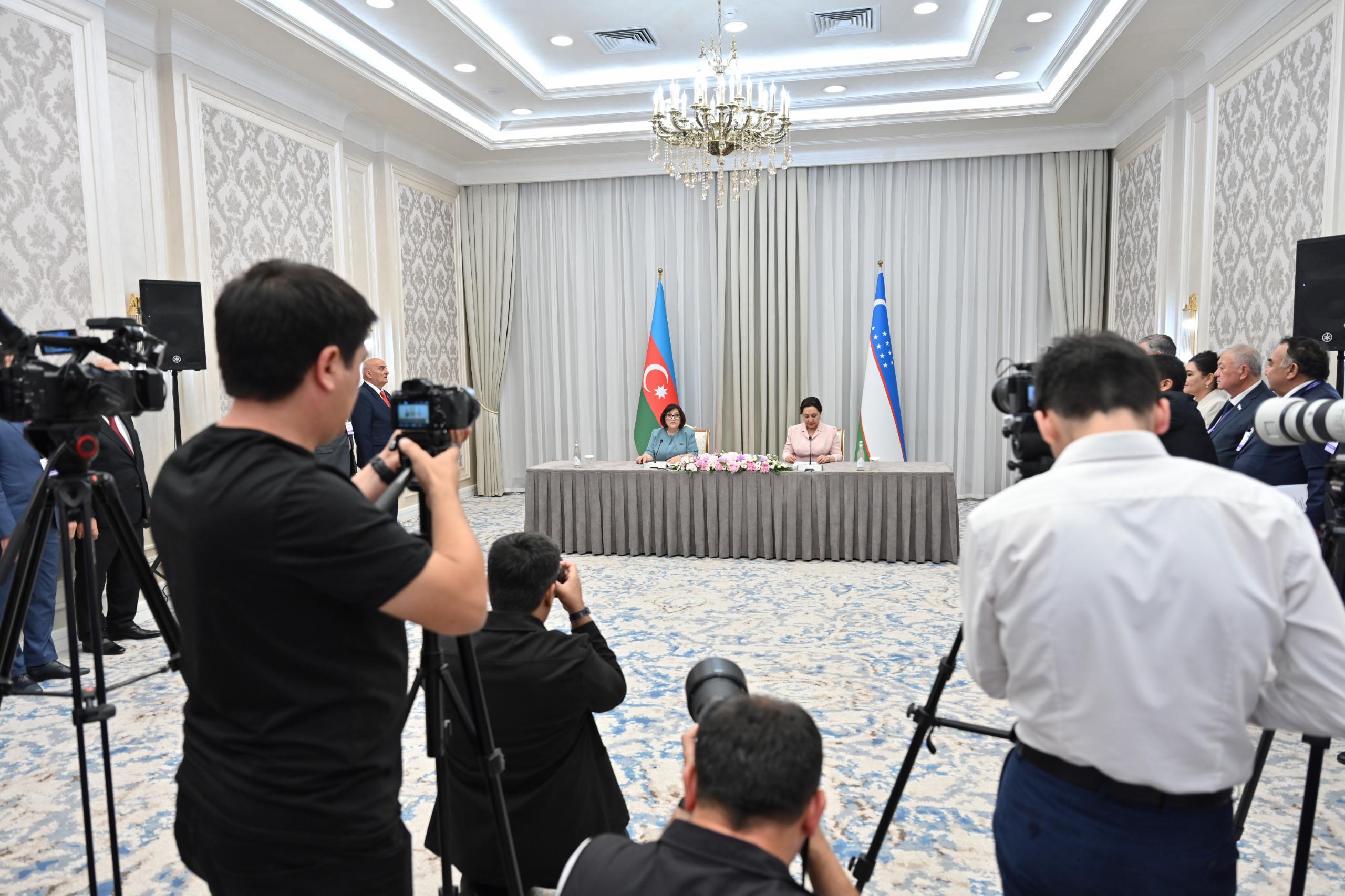 Milli Məclisin sədri Sahibə Qafarova və Özbəkistan Respublikası Ali Məclisi Senatının sədri Tənzilə Narbayeva Birinci Özbəkistan-Azərbaycan Parlamentlərarası Forumu ilə bağlı mətbuata bəyanatla çıxış ediblər.