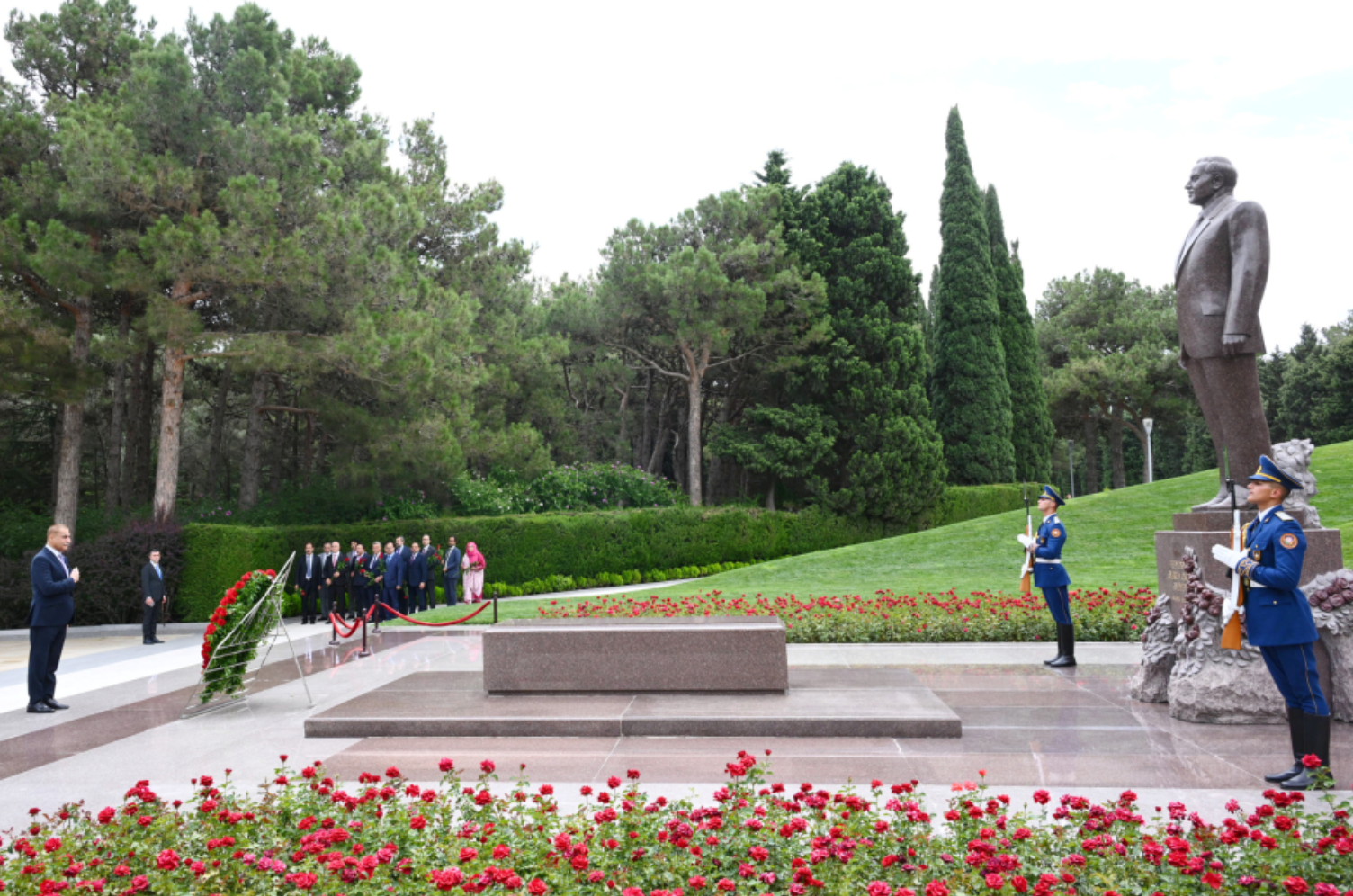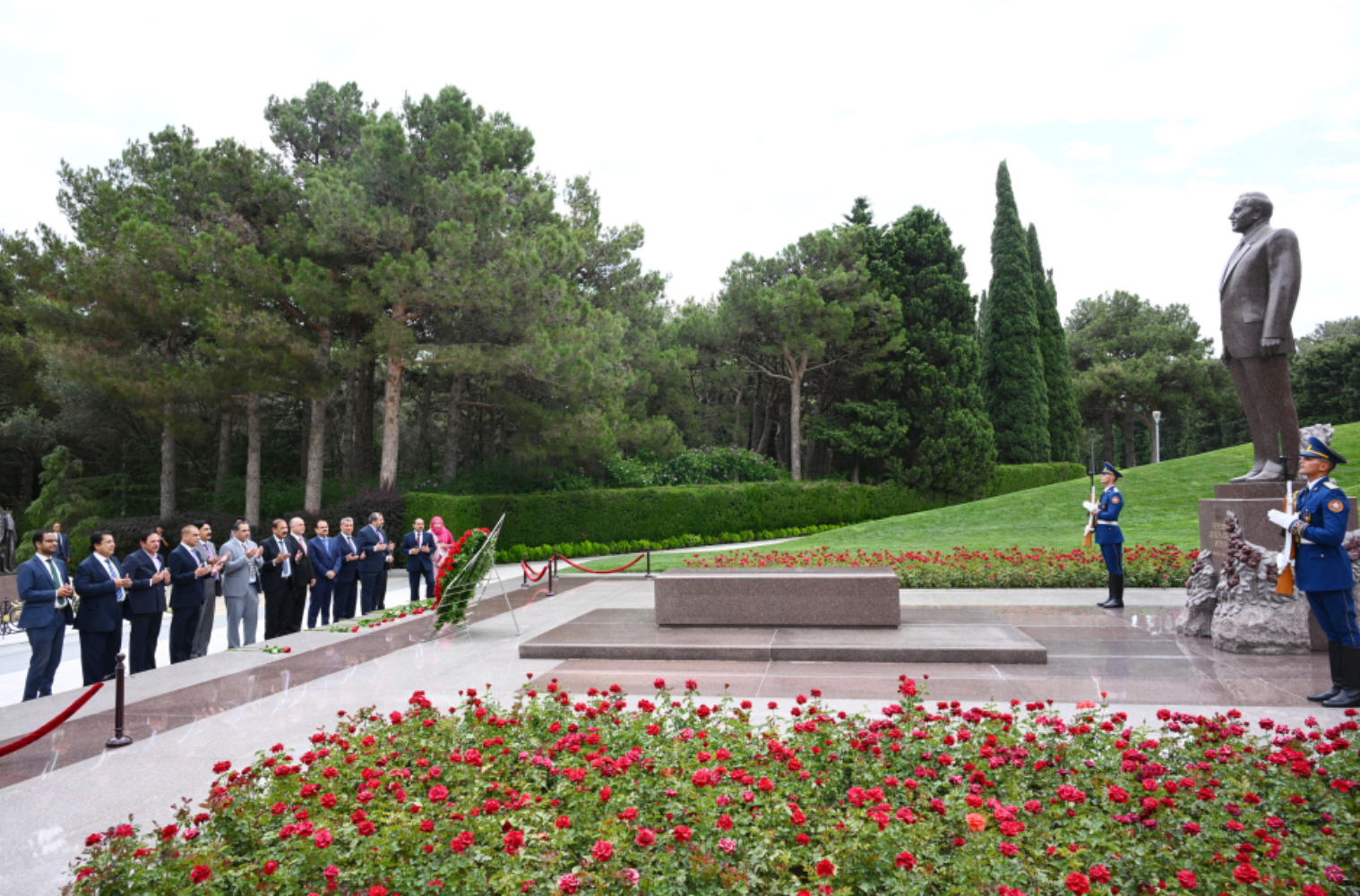Teleqraf xəbər verir ki, nümayəndə heyətinin üzvləri xalqımızın Ümummilli Lideri, müasir müstəqil Azərbaycan dövlətinin memarı və qurucusu Heydər Əliyevin xatirəsini ehtiramla yad edib, məzarı önünə əklil qoyublar.