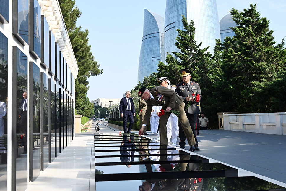 Bikldirilib ki, əvvəlcə qonaqlar Şəhidlər xiyabanında ölkəmizin müstəqilliyi və ərazi bütövlüyü uğrunda şəhid olmuş vətəndaşlarımızın məzarlarını ziyarət edərək gül dəstələri düzüb, “Əbədi məşəl” abidəsinin önünə əklil qoyublar.