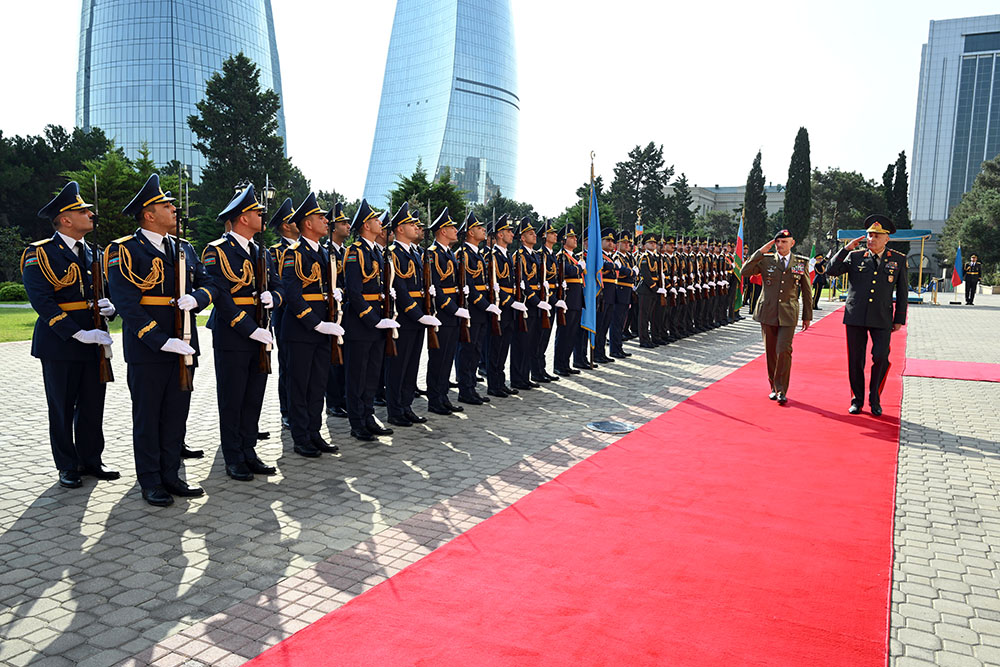 Azərbaycan Ordusunun Baş Qərargahında təşkil edilən rəsmi qarşılanma mərasimində fəxri qarovul dəstəsinin önündən keçiddən sonra hər iki ölkənin Dövlət himnləri səsləndirilib və protokola uyğun olaraq “Şərəf kitabı” imzalanıb.