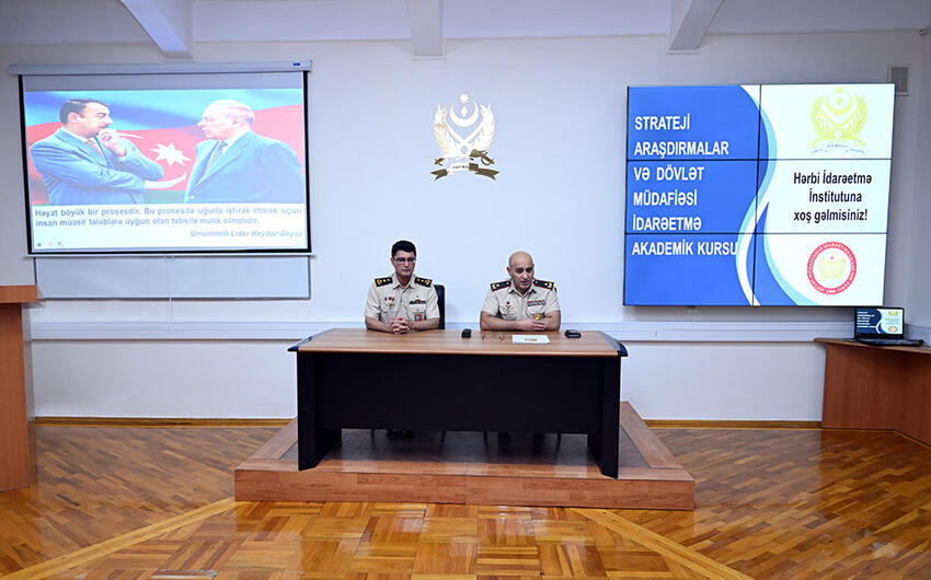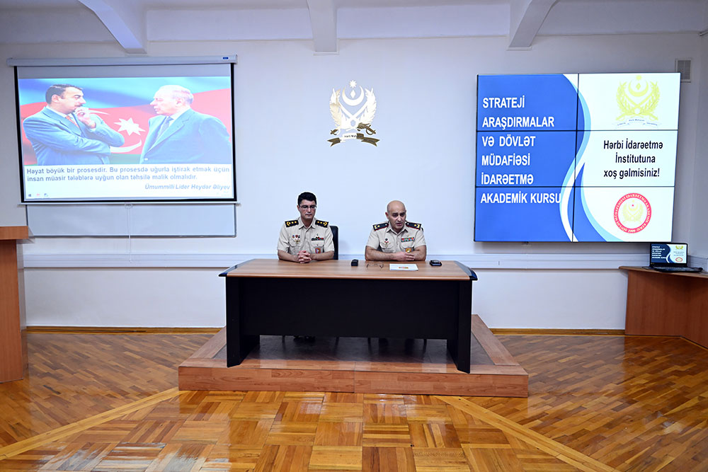 Milli Müdafiə Universitetinin (MMU) Hərbi İdarəetmə İnstitutunda Müdafiə Nazirliyi və digər dövlət qurumlarının, eləcə də qardaş ölkələr - Türkiyə və Pakistandan olan nümayəndələrin iştirakı ilə “Strateji araşdırmalar və dövlət müdafiəsini idarəetmə akademik kursu" keçirilir.