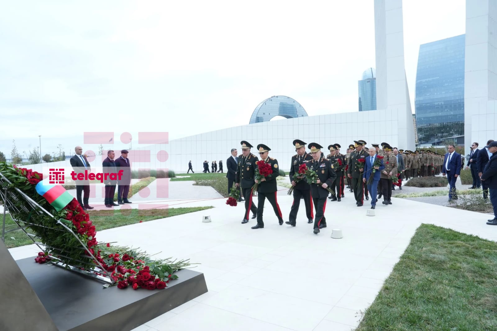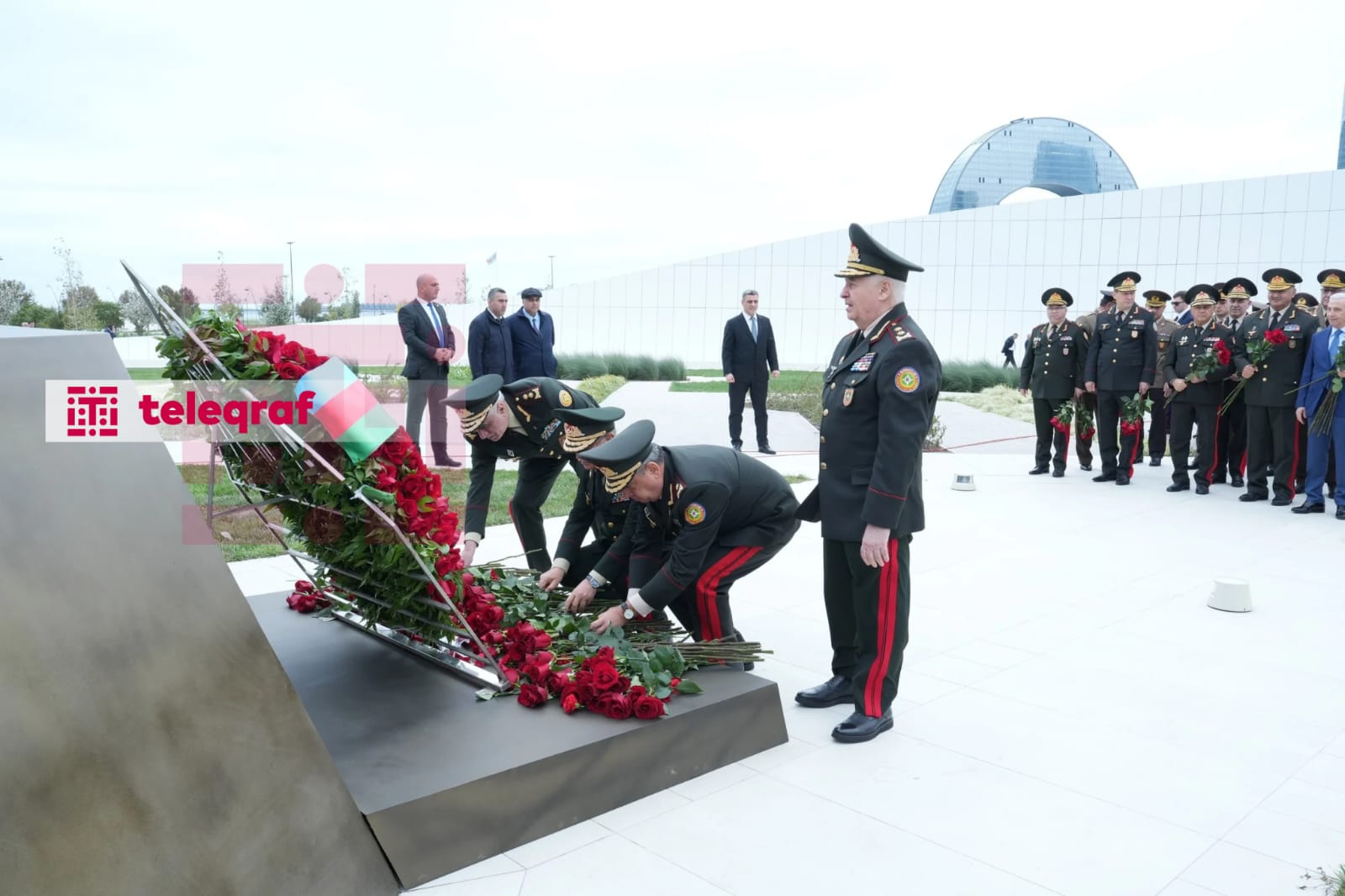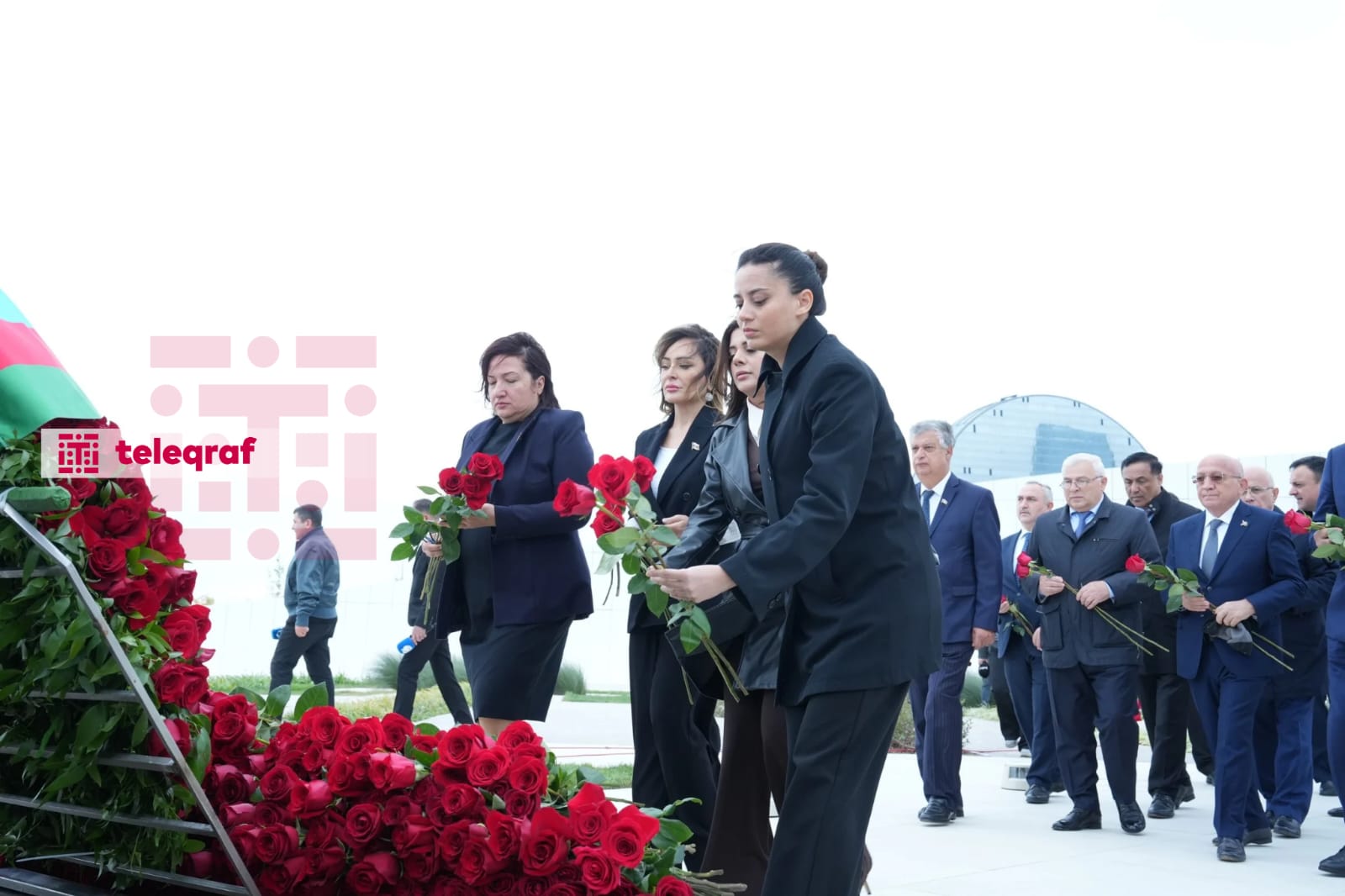 Teleqraf xəbər verir ki, abidə önünə tər güllər düzüb, şəhidlərin əziz xatirəsini dərin ehtiramla yad ediblər.