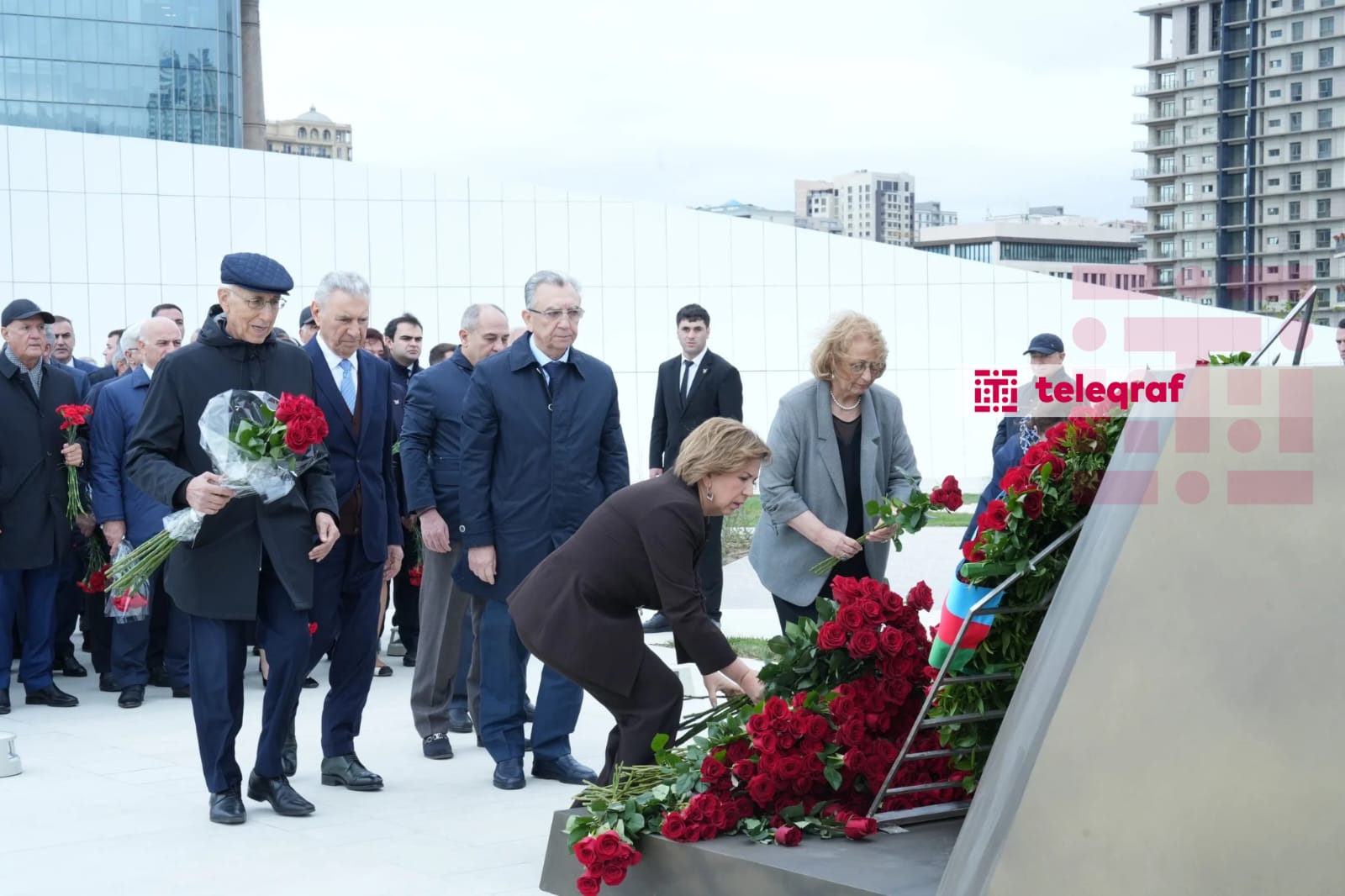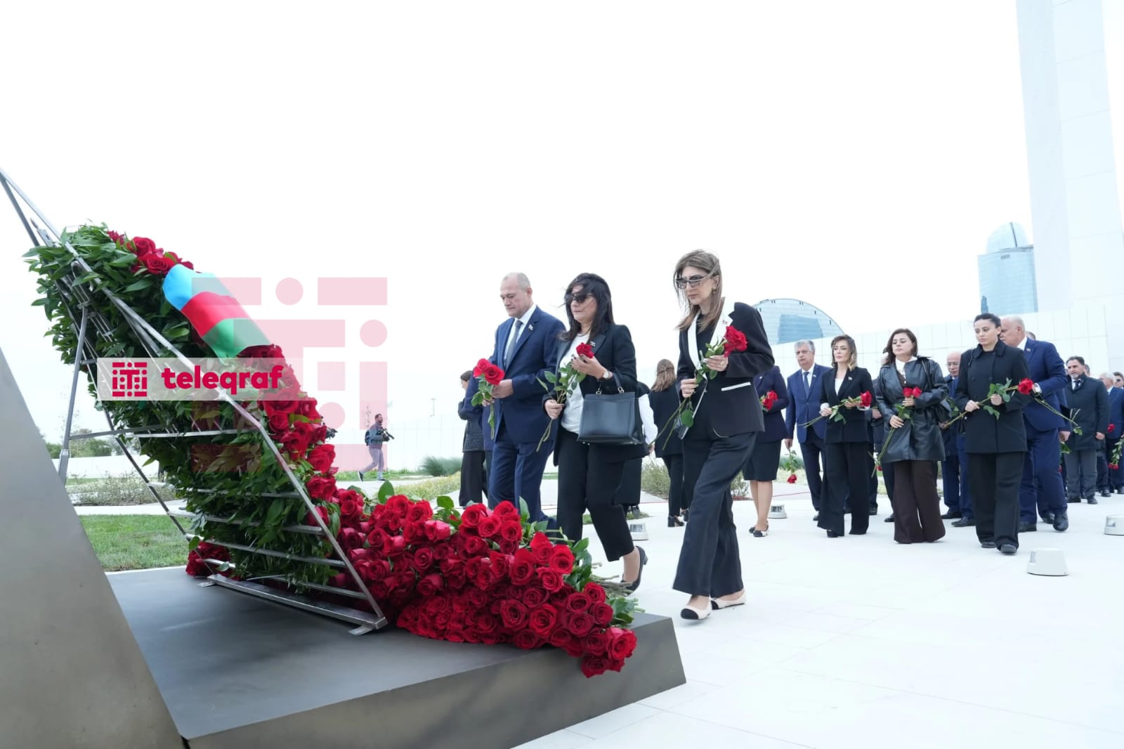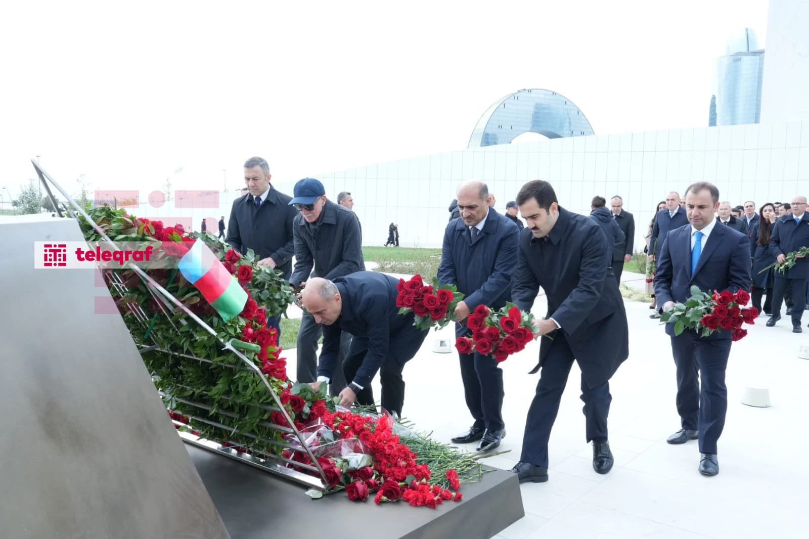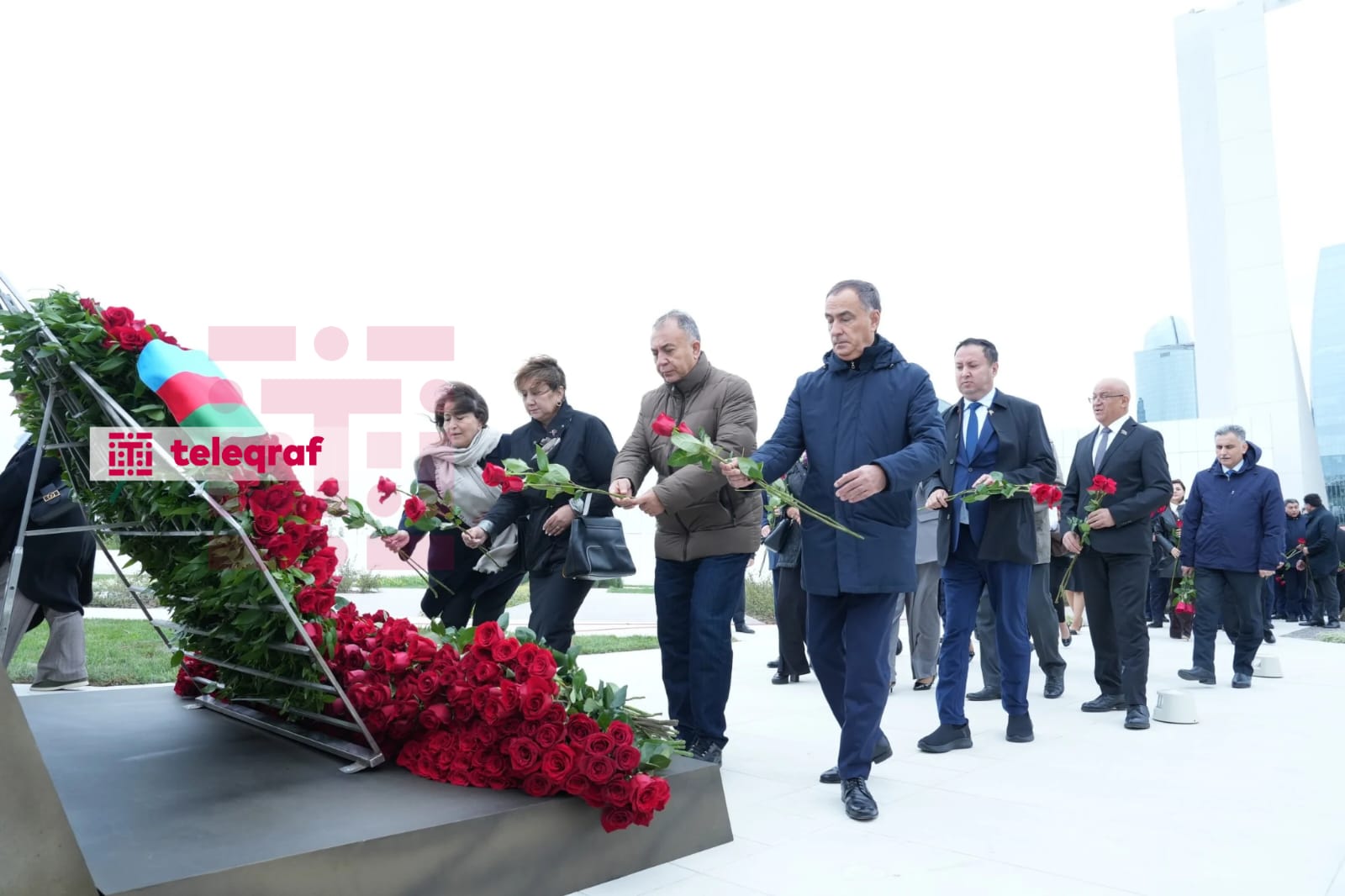 Teleqraf xəbər verir ki, dövlət və hökumət rəsmiləri xatirə daşının önünə gül dəstələri düzərək şəhidlərin əziz xatirəsini ehtiramla anıblar.