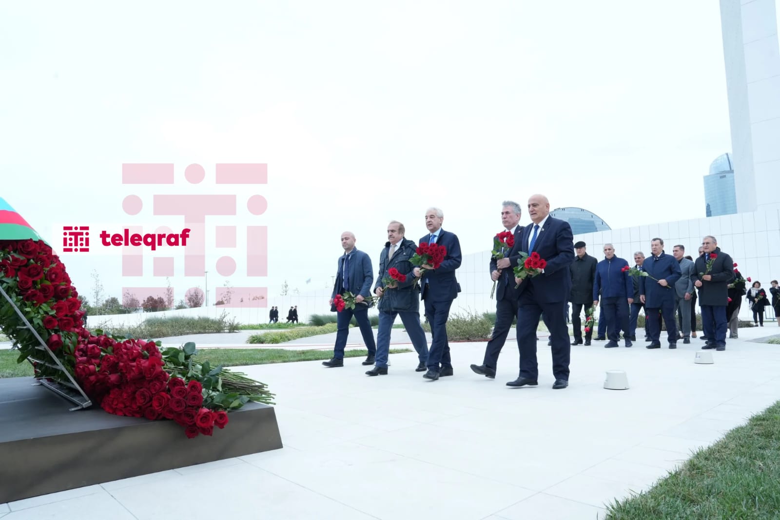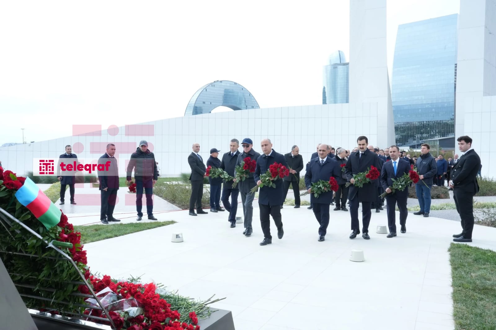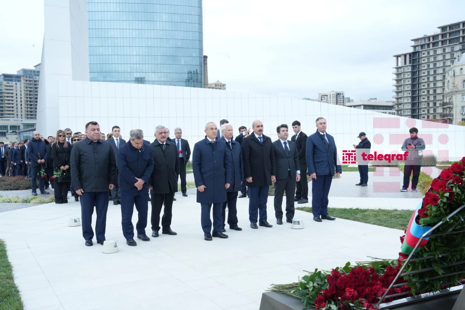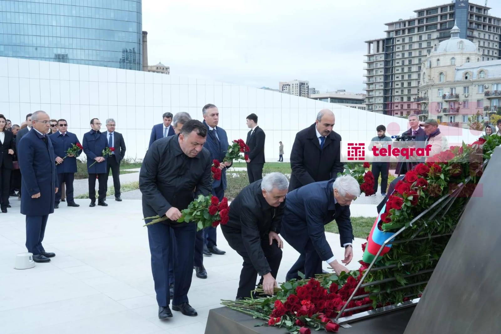 Teleqraf xəbər verir ki, dövlət və hökumət rəsmiləri xatirə daşının önünə gül dəstələri düzərək şəhidlərin əziz xatirəsini ehtiramla anıblar.