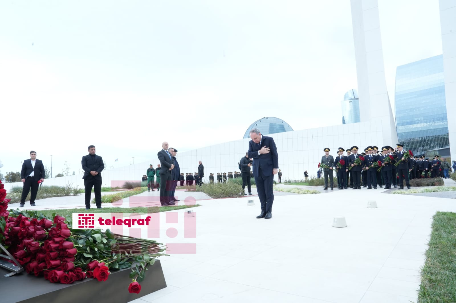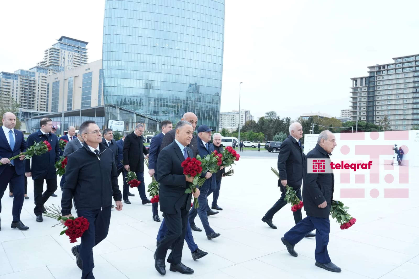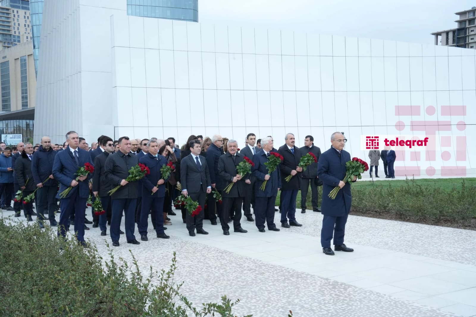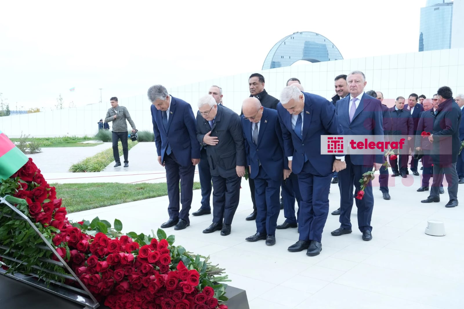 Teleqraf xəbər verir ki, dövlət və hökumət rəsmiləri xatirə daşının önünə gül dəstələri düzərək şəhidlərin əziz xatirəsini ehtiramla anıblar.