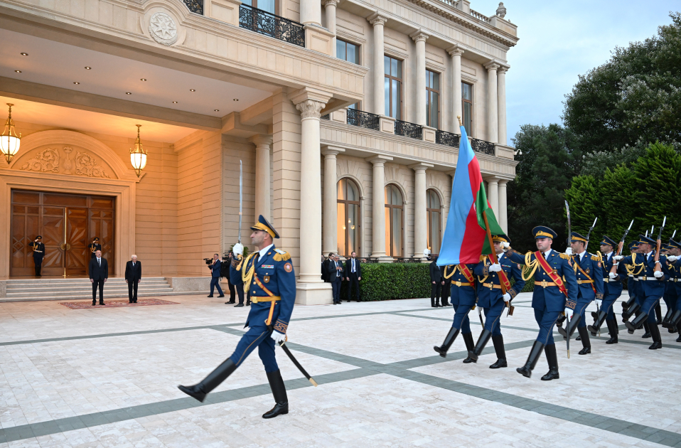 Fəxri qarovul dəstəsi hərbi marşın sədaları altında Azərbaycan Prezidenti İlham Əliyevin və İtaliya Prezidenti Sercio Mattarellanın qarşısından keçdi.