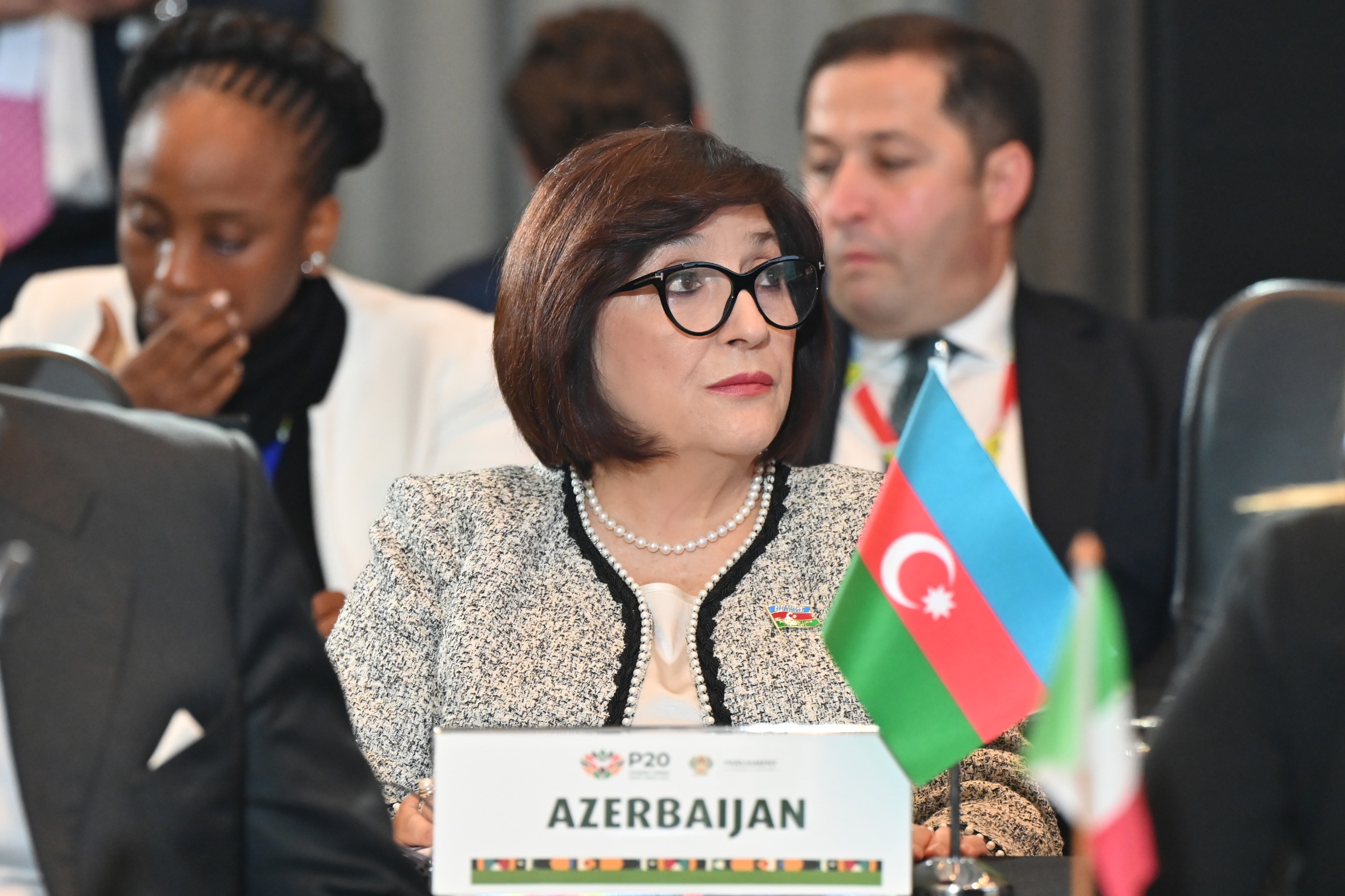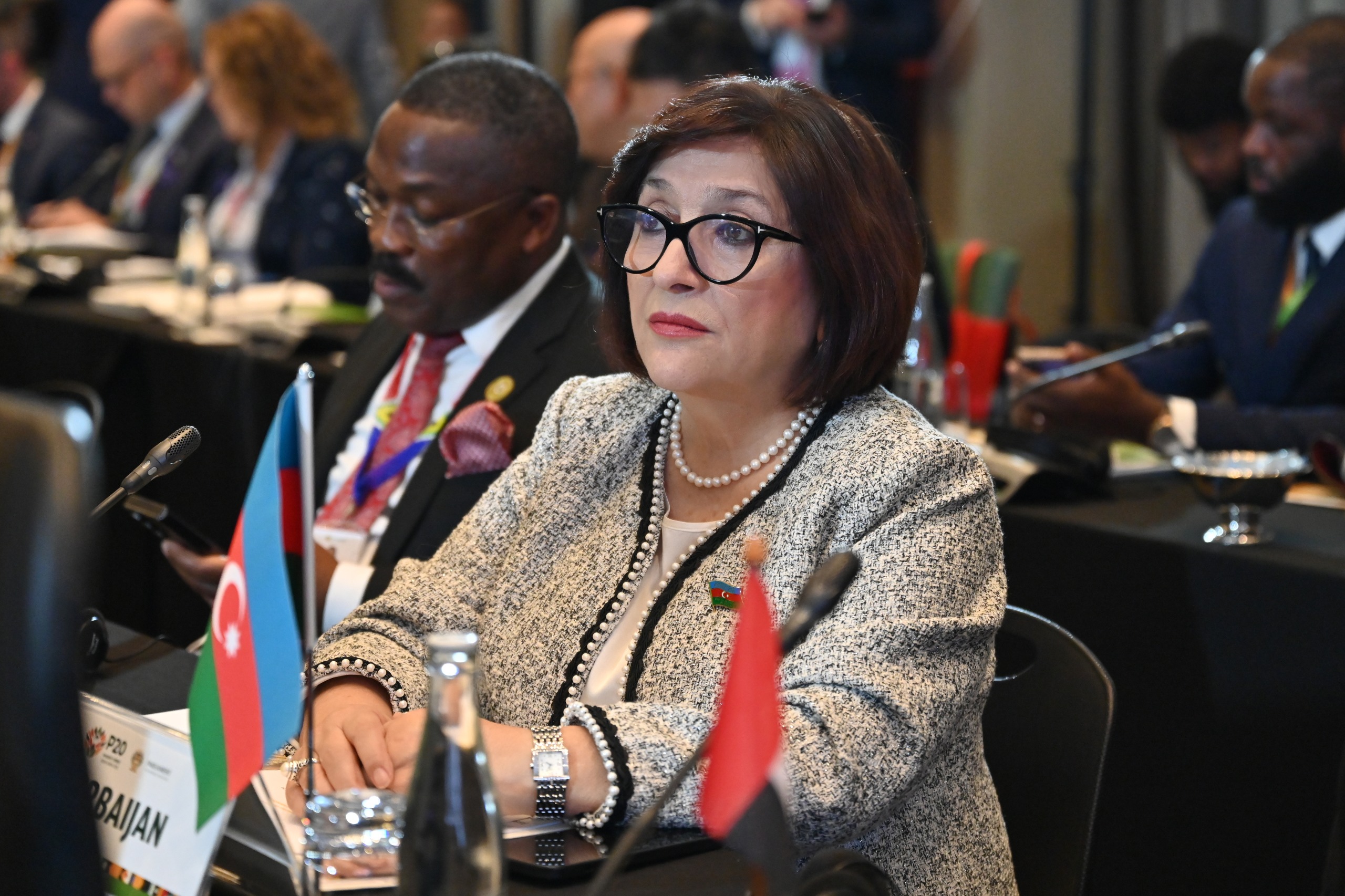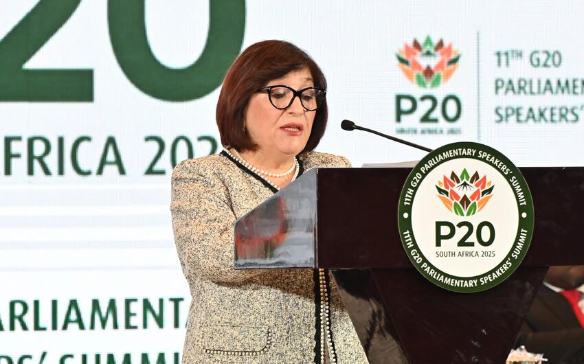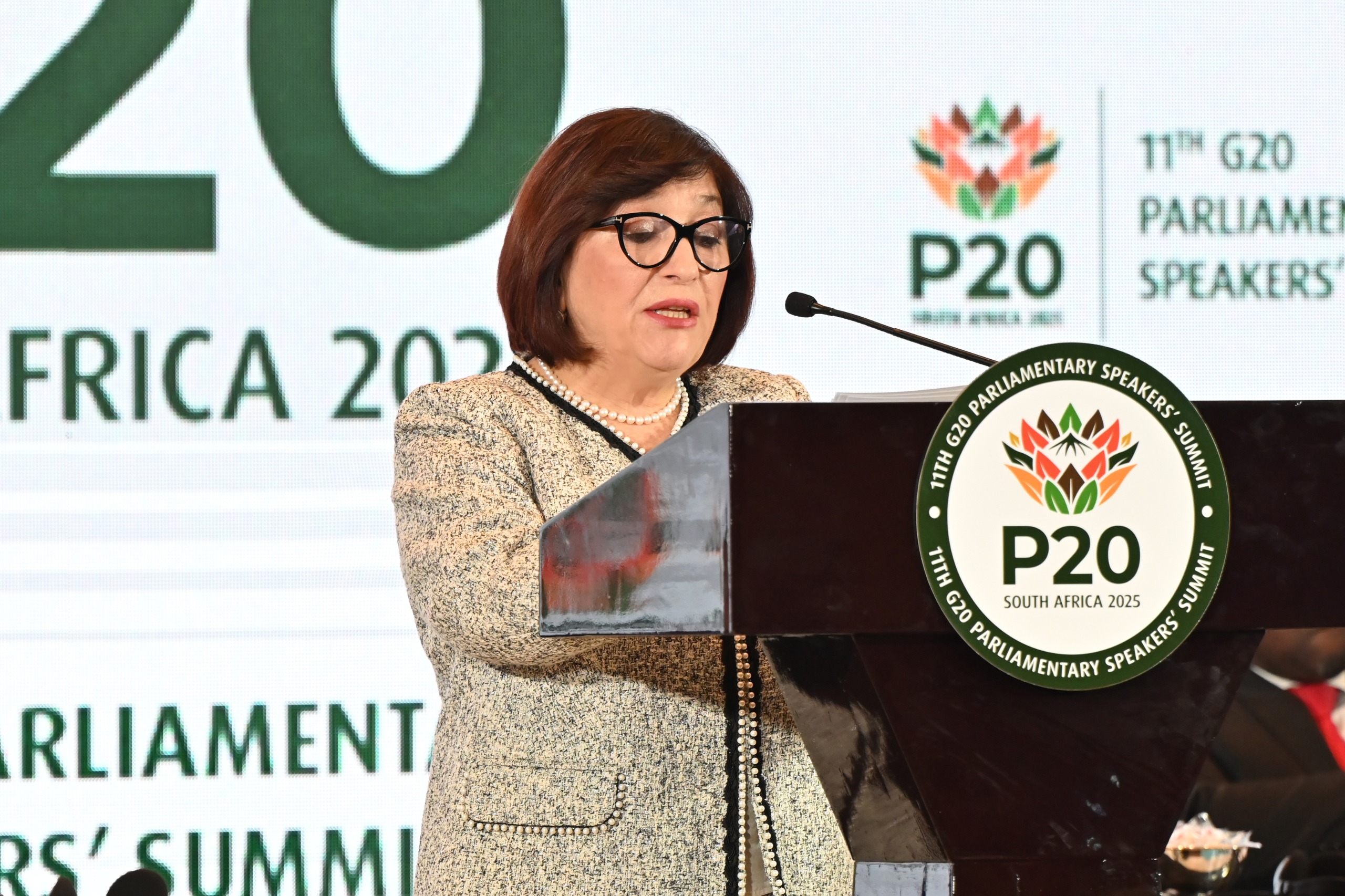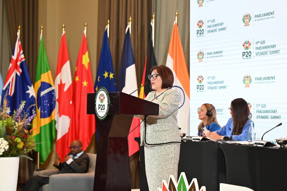 Milli Məclisin sədri Sahibə Qafarova Cənubi Afrika Respublikasına işgüzar səfəri çərçivəsində “Böyük iyirmilik” ölkələrinin (G20) Parlament Sədrlərinin 11-ci Sammitində (P20) “Fəlakətlərə qarşı dayanıqlığın və cavab tədbirlərinin gücləndirilməsi” mövzusu üzrə çıxış edib.