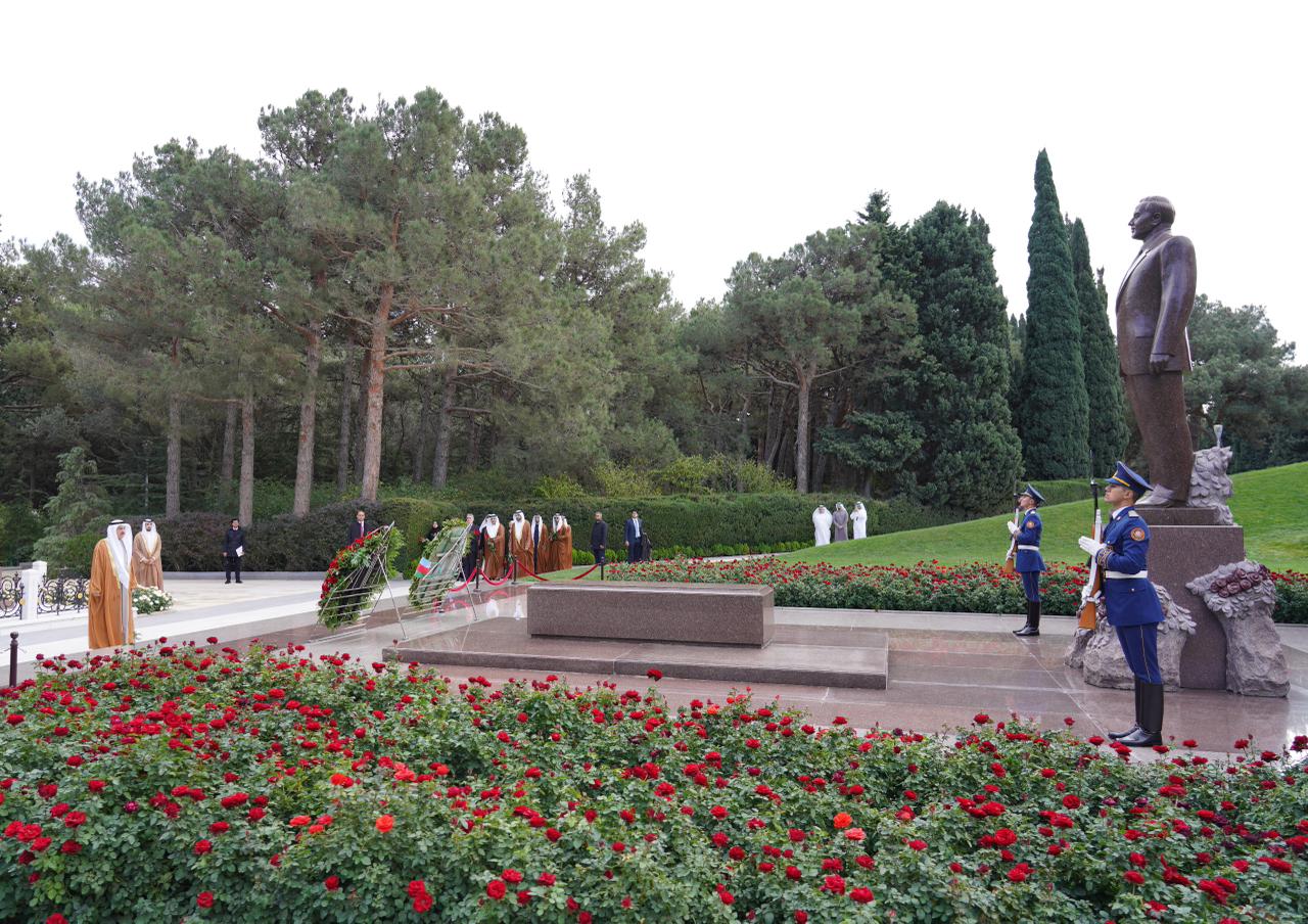 Ölkəmizdə rəsmi səfərdə olan Birləşmiş Ərəb Əmirlikləri (BƏƏ) Federal Milli Şurasının sədri Saqr Qobaşın başçılıq etdiyi nümayəndə heyəti Fəxri xiyabana gələrək xalqımızın Ümummilli Lideri, müasir müstəqil Azərbaycan dövlətinin memarı və qurucusu Heydər Əliyevin xatirəsini ehtiramla yad edib, məzarı önünə əklil qoyub, tər çiçəklər düzüb.