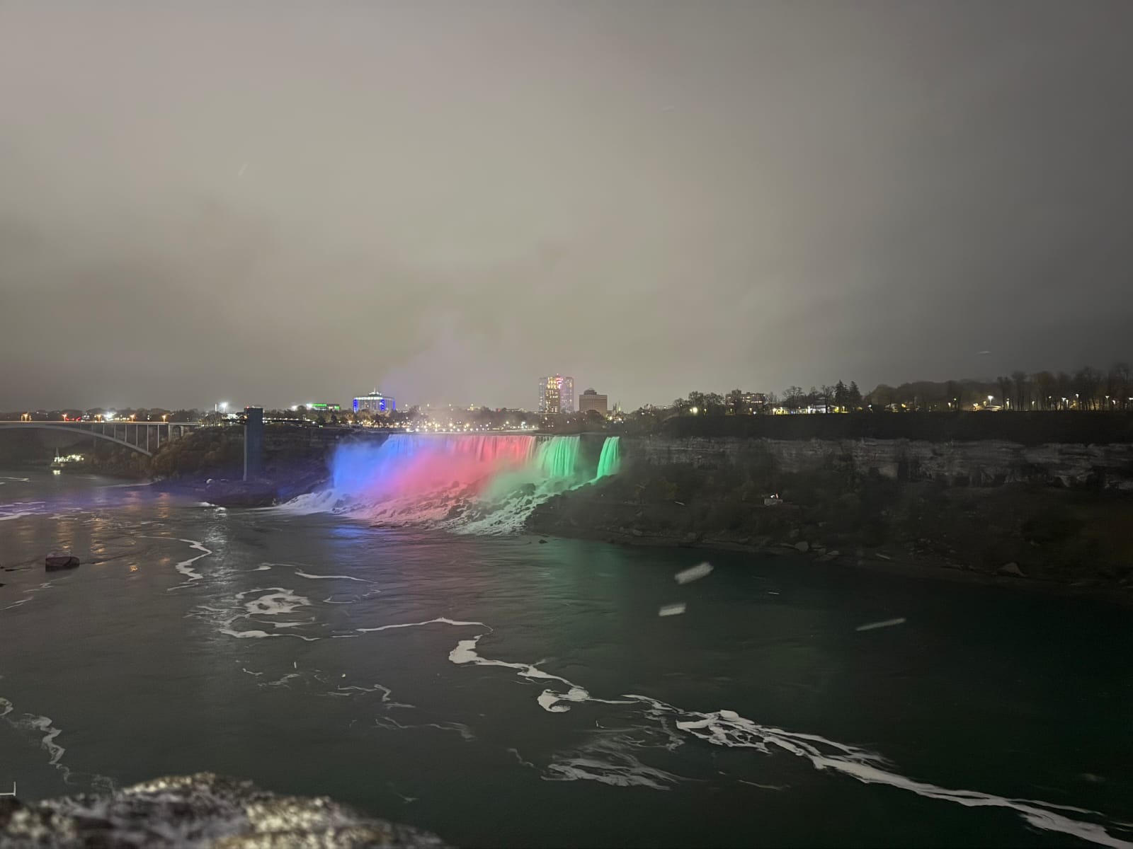 Kanadanın Ontario əyalətində yerləşən və dünyanın ən məşhur təbiət möcüzələrindən biri sayılan Niaqara şəlaləsi 9 Noyabr – Dövlət Bayrağı Günü münasibətilə xüsusi dizaynla işıqlandırılıb.