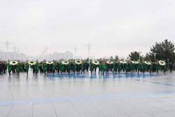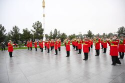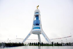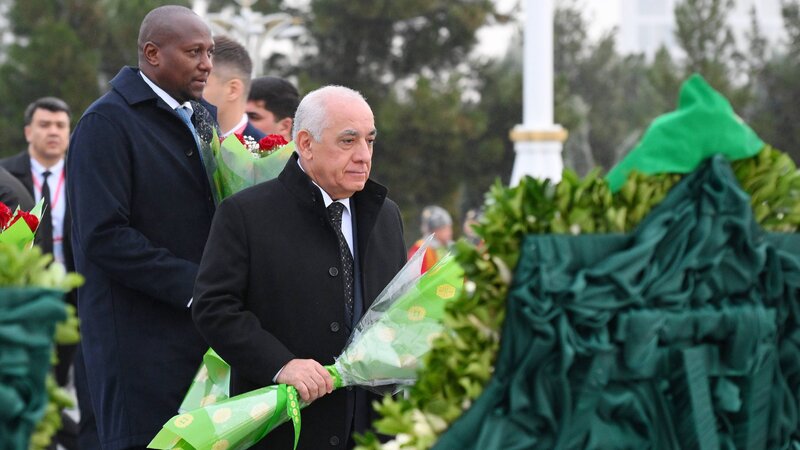 Baş nazir Əli Əsədov Aşqabadda Neytrallıq Abidəsinin önünə gül dəstəsi qoyub.