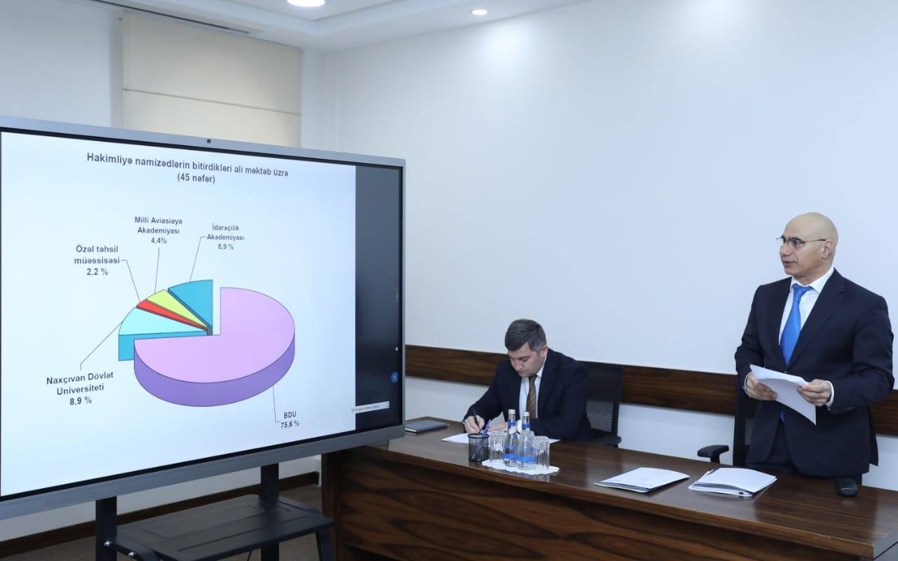 Sonra müsabiqəni uğurla başa vurmuş 45 hakimliyə namizədlə fərdi söhbətlər aparılıb, onlara tövsiyələr verilib və yekunda birinci instansiya məhkəmələrinin hakimi vəzifələrinə təyin olunmaları üçün təkliflərin hazırlanması qərara alınıb.