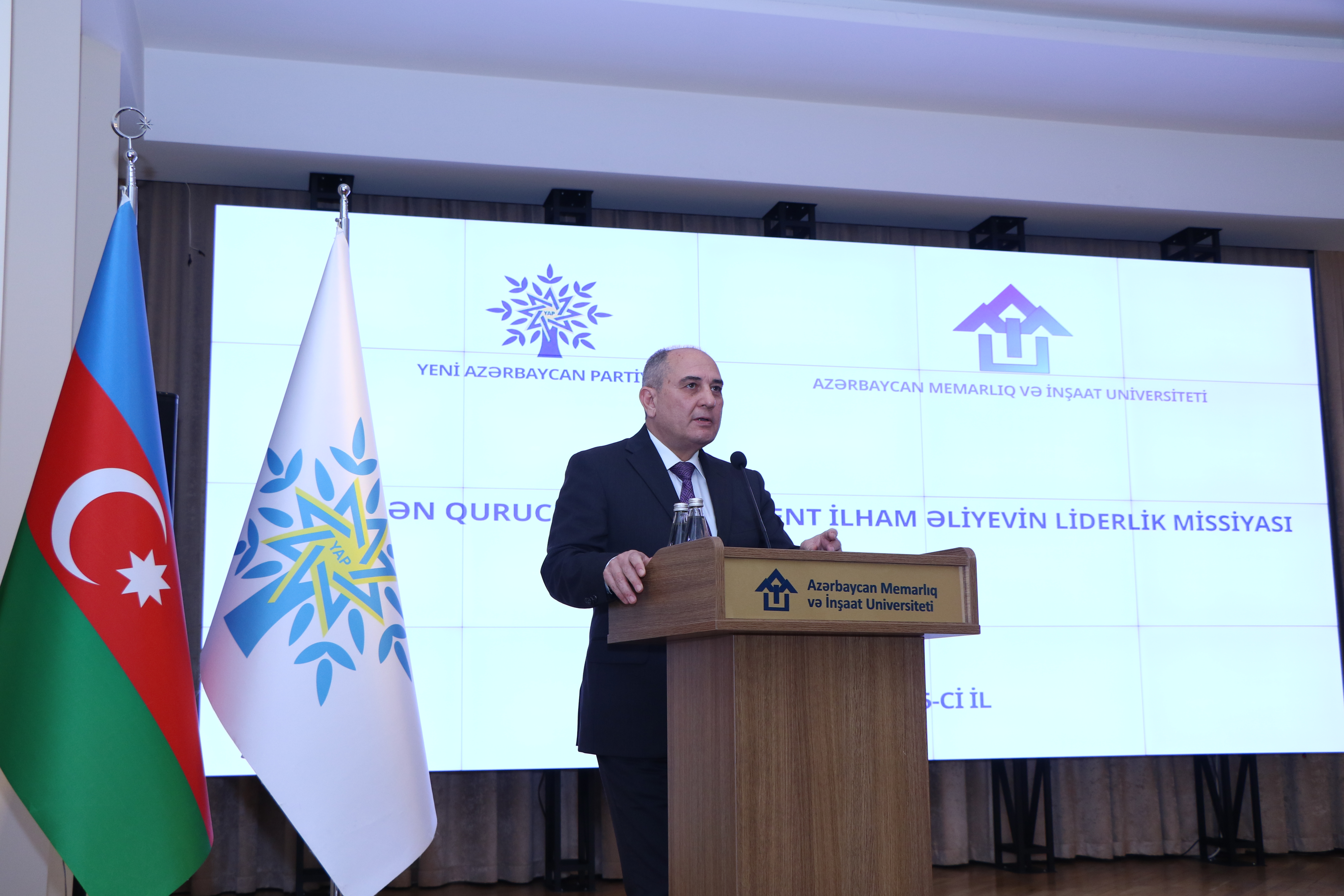 “Konstitusiya və Suverenlik İli” çərçivəsində Yeni Azərbaycan Partiyası (YAP) və Azərbaycan Memarlıq və İnşaat Universitetinin birgə təşkilatçılığı ilə “Zəfərdən quruculuğa: Prezident İlham Əliyevin liderlik missiyası” adlı tədbir keçirilib.