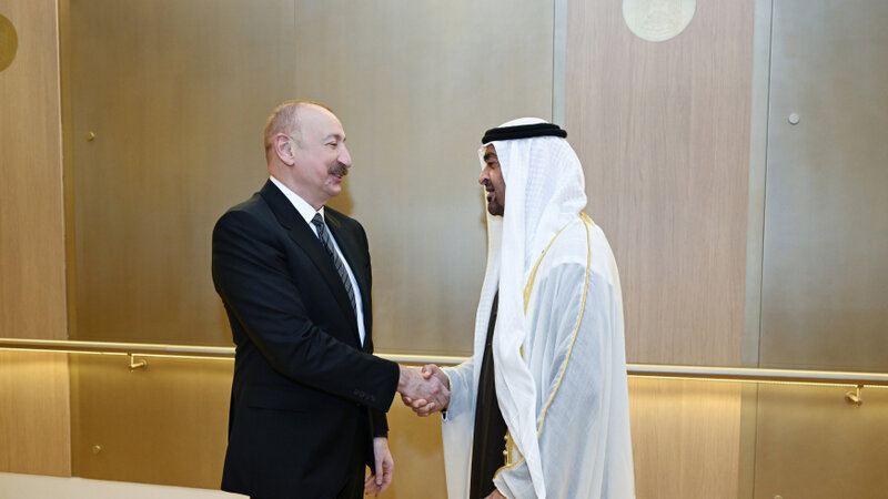 Prezident İlham Əliyevi Birləşmiş Ərəb Əmirliklərinin Prezidenti Şeyx Məhəmməd bin Zayed Al Nəhyan qarşılayıb.