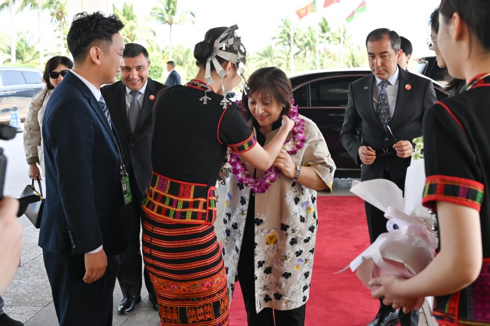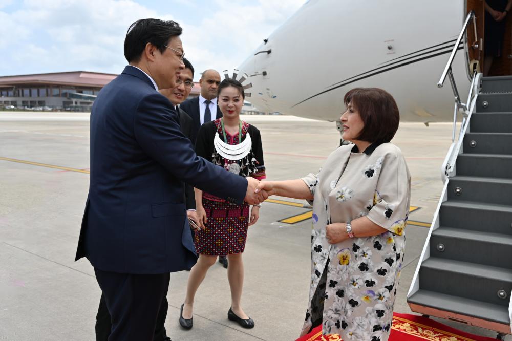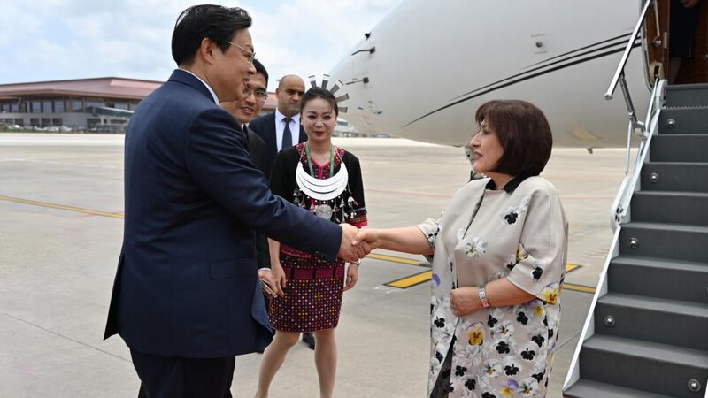 Bildirilib ki, Qionghai Boao beynəlxalq hava limanında Milli Məclisin sədrini Hainan Əyalətinin vitse-qubernatoru Yanq Quigianq, Azərbaycanın Çindəki səfiri Bünyad Hüseynov və digər rəsmi şəxslər qarşılayıblar.