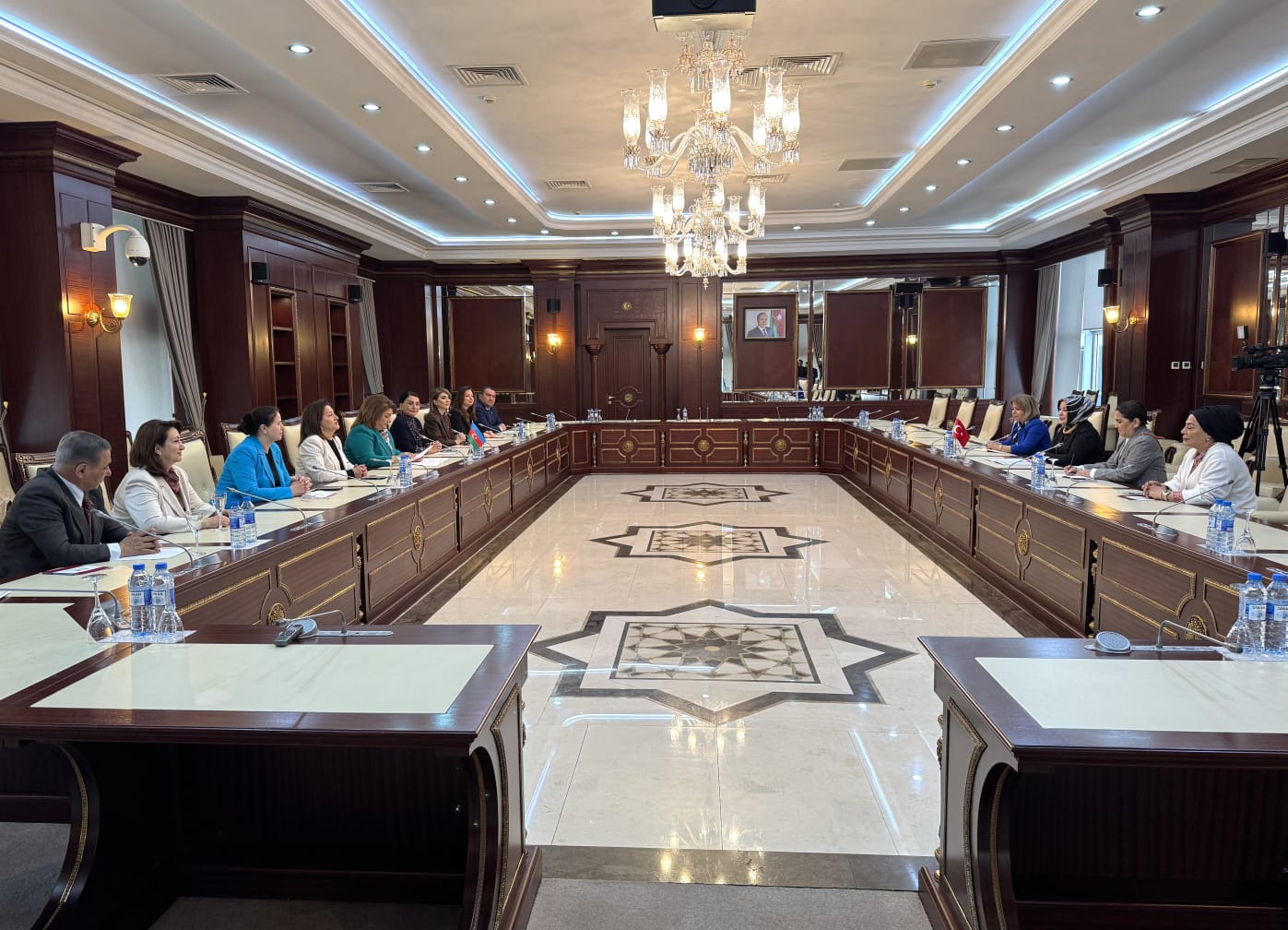Milli Məclisin Ailə, qadın və uşaq məsələləri komitəsinin üzvləri Bakıda keçirilən Asiyada Qarşılıqlı Fəaliyyət və Etimad Tədbirləri üzrə Müşavirənin (AQEM) Qadınlar Şurasının ilk iclasında iştirak etmək üçün ölkəmizdə səfərdə olan Türkiyə Böyük Millət Məclisinin Qadın və kişi bərabərliyi komissiyasının sədri Çiğdem Erdoğanın rəhbərlik etdiyi nümayəndə heyəti ilə görüşüblər.