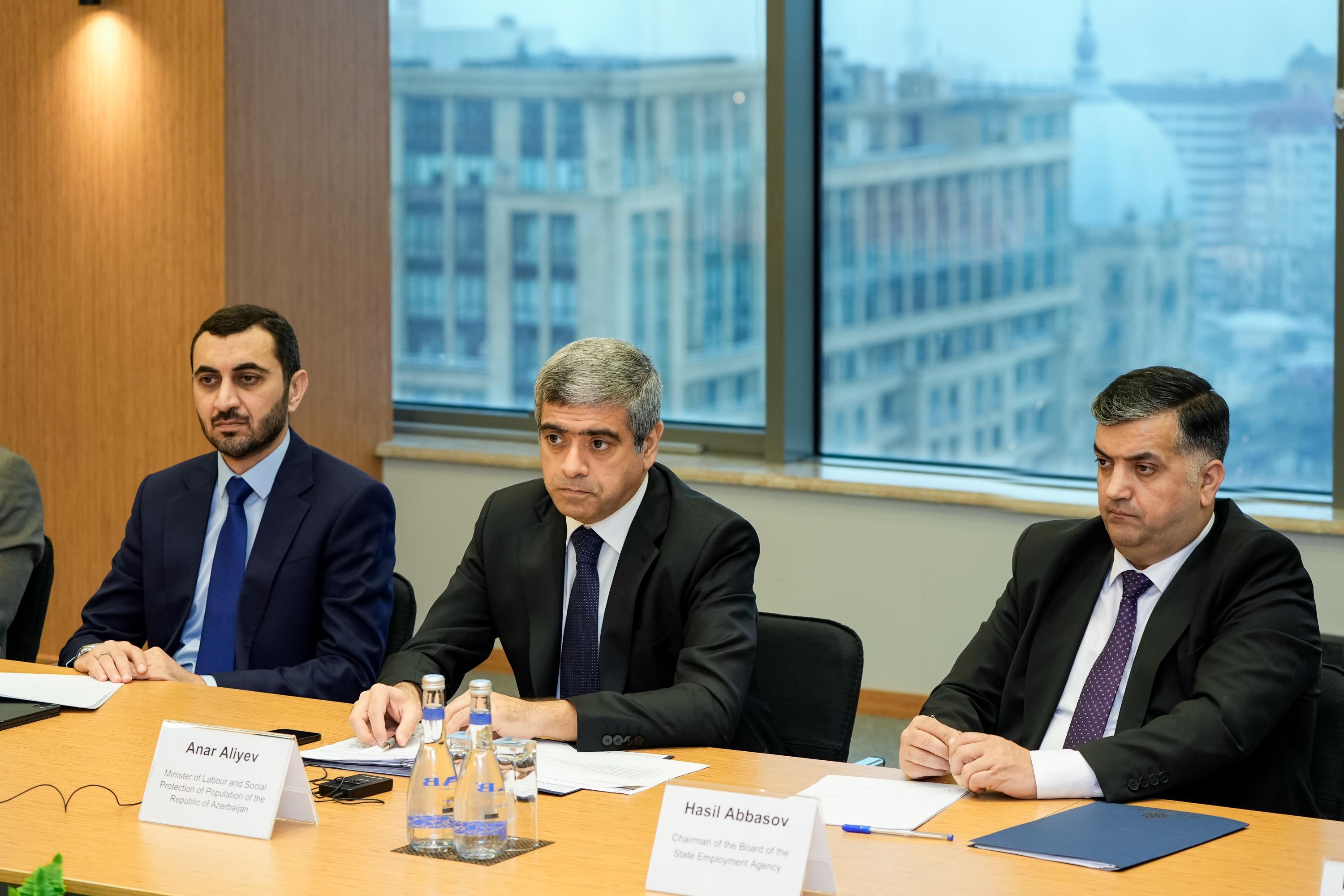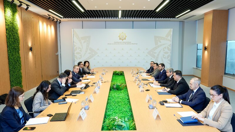 Daha sonra əmək və əhalinin sosial müdafiəsi nazirinin müavini Rəşad Mustafayevin iştirakı ilə keçirilən görüşdə Beynəlxalq Valyuta Fondunun nümayəndə heyəti tərəfindən Azərbaycanın əmək bazarının təhlilinə dair təqdimat edilib.