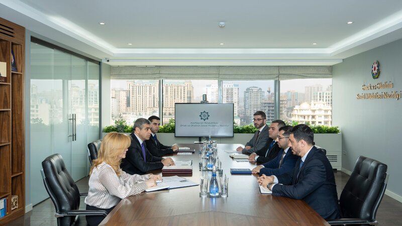 Əmək və əhalinin sosial müdafiəsi naziri Anar Əliyev Nazirlikdə Mentorluq Proqramını uğurla başa çatdıran dördüncü “Yüksəliş” müsabiqəsi qalibləri Nicat Qocayev, Eyyub Fətəliyev və növbəti 1 il ərzində Mentorluq Proqramına cəlb ediləcək beşinci “Yüksəliş” müsabiqəsi qalibləri İrşad Əsgərxanlı və Qoşqar Daşdiyev ilə görüşüb.